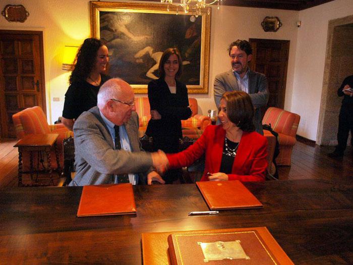 O alumnado dos graos de Economía e de Administración de Empresas poderán realizar prácticas nas instalacións das empresas asociadas á Asociación de Executivas de Galicia. Ademais, a Asociación poderá achegar os seus expertos/as, asociados/as e interesado/as para aquela parte da docencia teórico-práctica especializada que fora precisa. O reitor Juan Casares e a presidenta da Asociación de Executivas de Galicia, Montserrat Sánchez-Agustino, asinaron este mércores 5 en San Xerome un convenio de colaboración que regula estes aspectos. No acto estiveron presentes ademais a decana da Facultade de Ciencias Económicas e Empresariais, Mª Emilia Vázquez Rozas, o vicedecano do centro e a vicepresidenta da O establecemento desta colaboración, en opinión do reitor Juan Casares, destaca pola importancia de afianzar lazos cunha asociación que reflicte a crecente presenza de mulleres en postos destacados do contorno empresarial, o que dá continuidade á propia realidade universitaria onde se rexistra unha presenza maioritaria de mulleres no colectivo do alumnado. Por outra banda, Casares agradeceu o esforzo da Asociación de Executivas por contribuír a transmitir a mensaxe real de que a universidade asume a formación de homes e mulleres máis alá das aulas, xuntando aos contidos teóricos un mellor coñecemento do contorno no que desenvolverán o seu futuro profesional. Neste mesma liña, Montserrat Sánchez-Agustino considera que o programa de prácticas a desenvolver evidencia o compromiso do colectivo que encabeza coa Universidade por contribuír á formación de profesionais cualificados. A presidenta da Asociación de Executivas entende que os programas de prácticas en empresas e institucións son ademais un estímulo ao emprendemento e ao fomento do autoemprego entre os universitarios, a través do contacto directo con iniciativas empresariais. O programa de prácticas a desenvolver ao abeiro deste convenio terá unha carga lectiva de ata un máximo de seis créditos correspondentes ao cuarto curso dos graos de Economía e de Administración de Empresas. De xeito xenérico, permitirá desenvolver os comportamentos do rol profesional básico (asistencia, puntualidade ou cumprimento das tarefas asignadas, entre outros), poñer en práctica competencias de carácter transversal propias do exercicio profesional, como o traballo en equipo, a comunicación ou análise e resolución de problemas, así como poñer en prácticas competencias específicas do profesional da economía. Para matricularse neste período formativo será requisito superar polo menos 150 créditos obrigatorios, entre eles a totalidade do 1º e o 2º curso. A realización de prácticas en determinadas empresas ou institucións poderá ademais requirir superar algunha/s materia/s concretas do plan de estudos, pola súa especial vinculación con todo tipo de actividade profesional que se desenvolva nelas. As actividades a desenvolver neste período formativo concretaranse nun programa específico de actividades, en función das características, obxectivos e funcións de cada centro de traballo, que contemplará o contacto do estudantado cunha serie de labores e tarefas que nese centro se desenvolvan, sempre baixo a tutela do profesional responsable. Durante a realización das prácticas, o alumnado manterá contacto periódico co titor académico que realizará un seguimento e orientación do desenvolvemento das prácticas en coordinación co titor profesional.