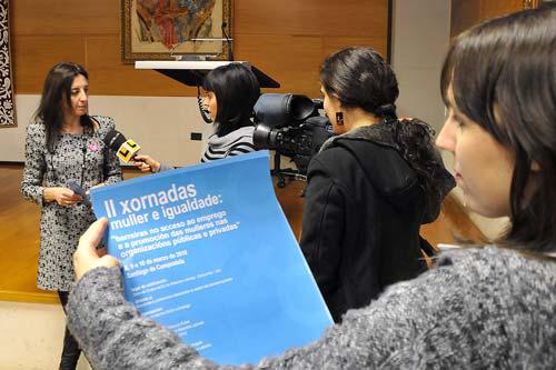 O grupo de estudos Muller e Emprego da USC organiza ata o 10 de marzo as segundas Xornadas Muller e Igualdade que nesta ocasión profundan nas barreiras no acceso ao emprego e a promoción das mulleres nas organizacións públicas e privadas. A secretaria xeral de Igualdade, Marta González Vázquez, e o director da Escola Universitaria de Relacións Laborais, Juan Ares Fernández, inauguraron este luns o encontro no Salón de Graos da escola.