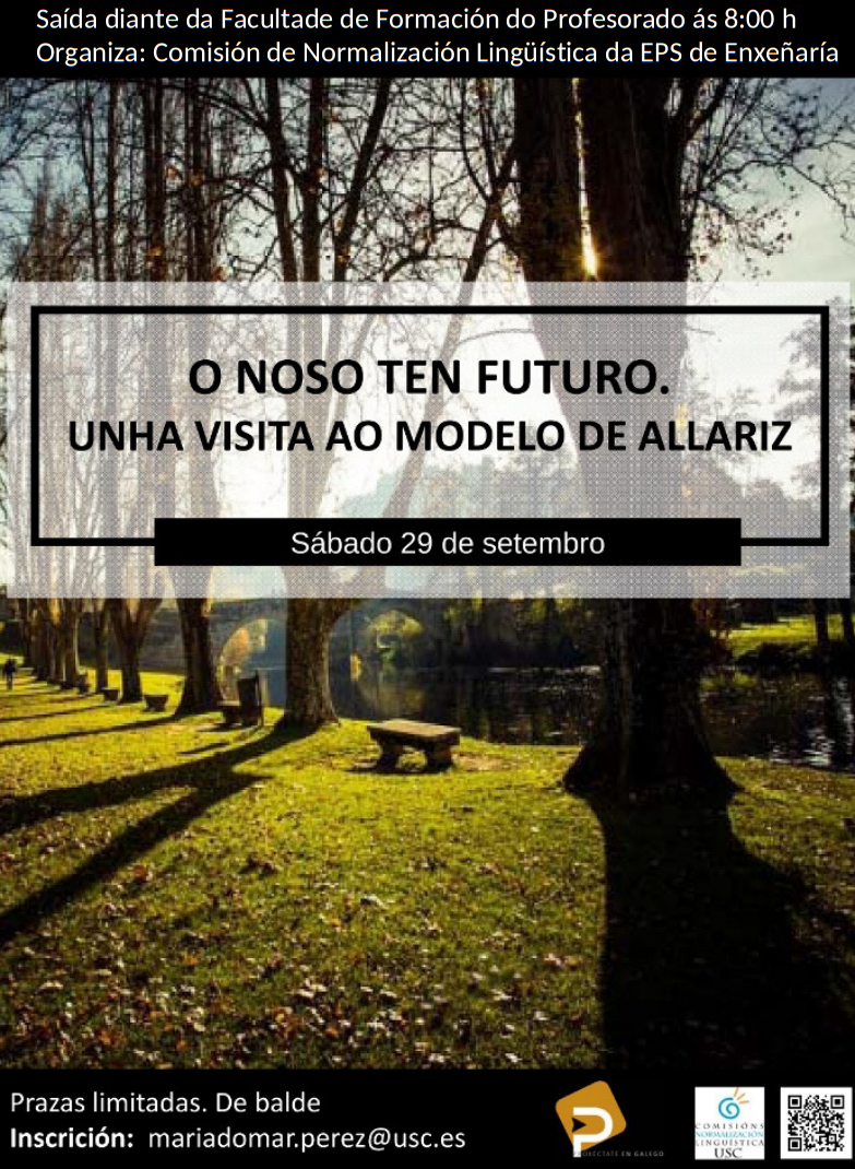 O ‘Roteiro de outono’ organizado pola Comisión de Normalización Lingüística da EPS de Enxeñaría prepara para o vindeiro 29 de setembro unha viaxe a Allariz e a súa contorna coa intención de coñecer de primeira man algúns dos proxectos de desenvolvemento rural que alí se desenvolven, así como os labores de restauración e revitalización do seu casco urbano.