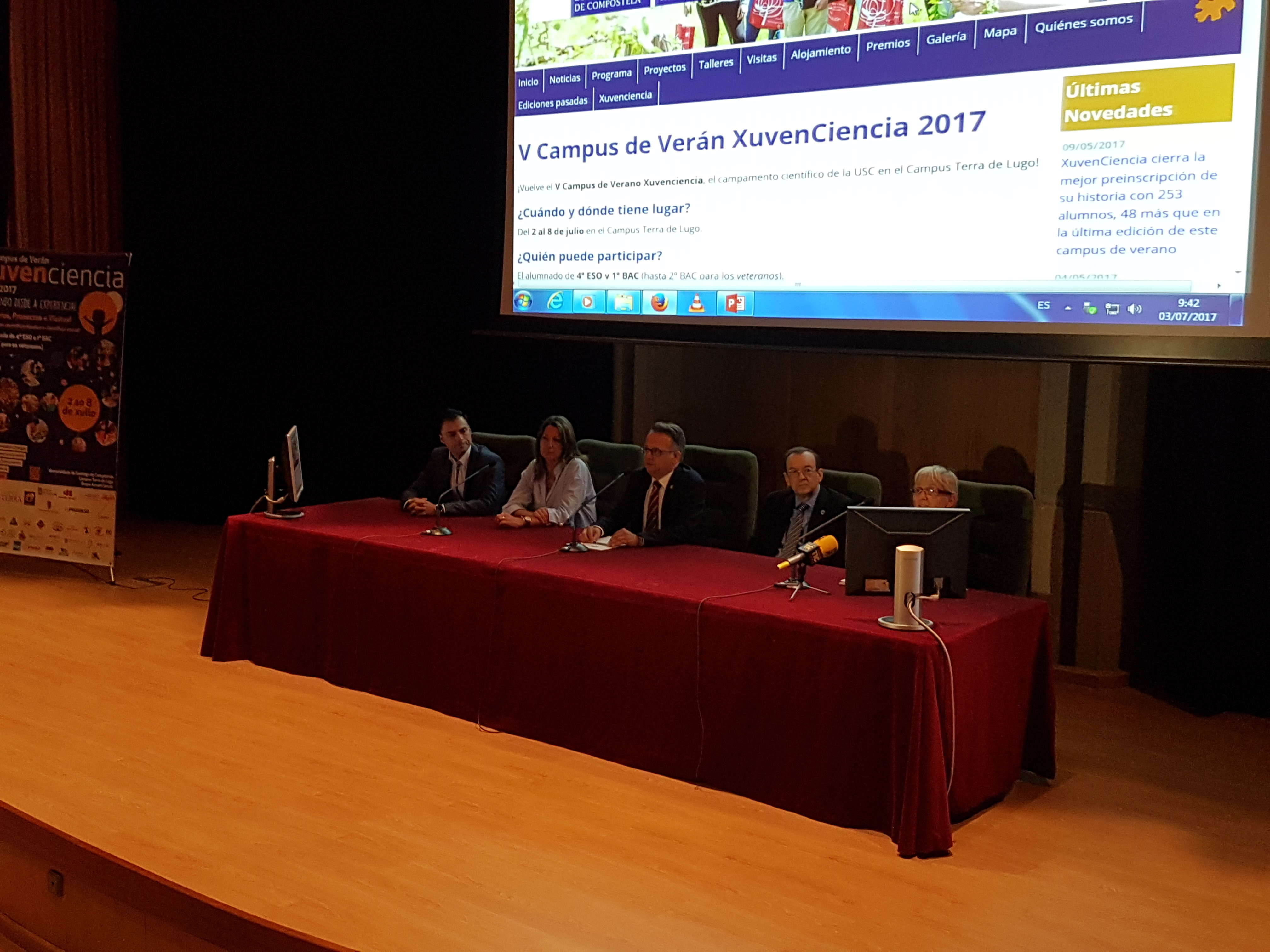 El Campus Terra de la USC acogió este lunes la inauguración del V campus de Verano XuvenCiencia, un proyecto de divulgación científica con más de 104 eventos programados y avalado por la participación de unos 146 docentes de la USC y otro personal de apoyo, que se extenderá hasta el próximo 8 de julio.