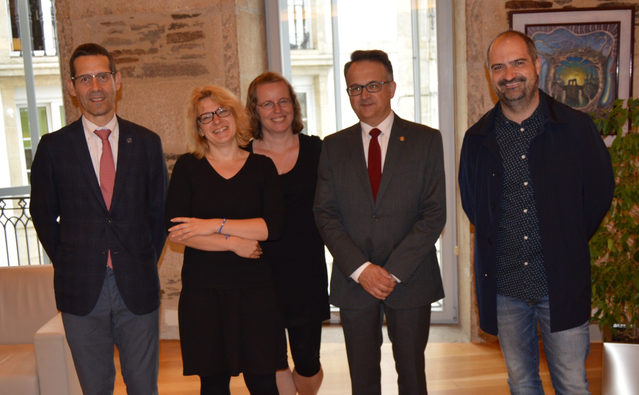 Anna Nowak, del Centro de Transferencia de Tecnología de la Universidad de Cracovia y Małgorzata Lalicka, de la oficina de fondos estructurales de la misma institución, fueron recibidas este miércoles por el vicerrector de Coordinación del campus de Lugo, Javier Bueno Lema, por el vicerrector de Desarrollo Científico y Tecnológico, Andrés Barreiro Lois, y por el técnico de transferencia de la USC, José Manuel Rebolo.