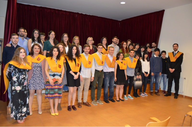 La residencia universitaria Jesús Bal y Gay del Campus Terra de la USC despidió la promoción de residentes 2014-2016 con un acto académico de imposición de bandas a los estudiantes que llevan ya tres años en el centro y con la entrega de diplomas de convivencia a las personas extranjeras que recalaron durante este curso académico en esta instalación del Servicio Universitario de Residencias (SUR) de la USC.