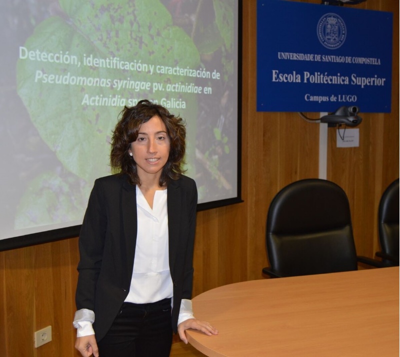 El follaje amontonado durante los meses de otoño e invierno en los suelos de las plantaciones de kiwi constituyen un reservorio para la P.syringae pv. actinidiae, causante del chancro bacteriano del Kiwi, según concluye la investigación de doctorado que acaba de presentar en la Escuela Politécnica Superior del Campus Terra de la USC la licenciada en Biología Aitana Ares Yebra bajo el título 'Detección, identificación y caracterización de Pseudomonas syringae pv. actinidiae en Actinidia spp. en Galicia’.