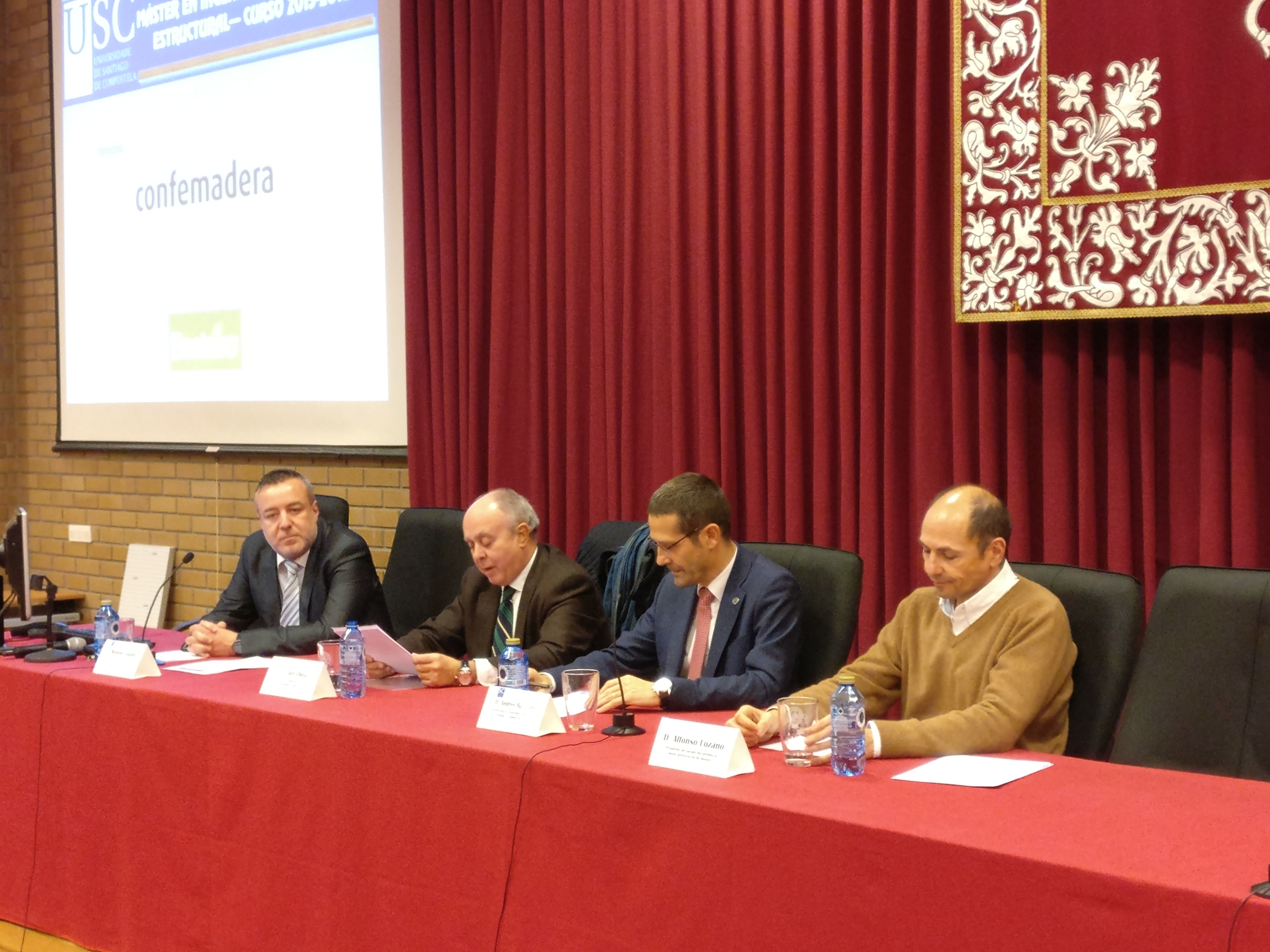 El acto estuvo presidido por Andrés Barreiro, vicerrector de Desarrollo Científico y Tecnológico del Campus de Lugo, y en el mismo también participaron, además del presidente de Confemadera, Elier Ojea, Alfonso Lozano, presidente del jurado de los Premios Proyecto fin de Máster y Manuel Guaita, director del Máster.