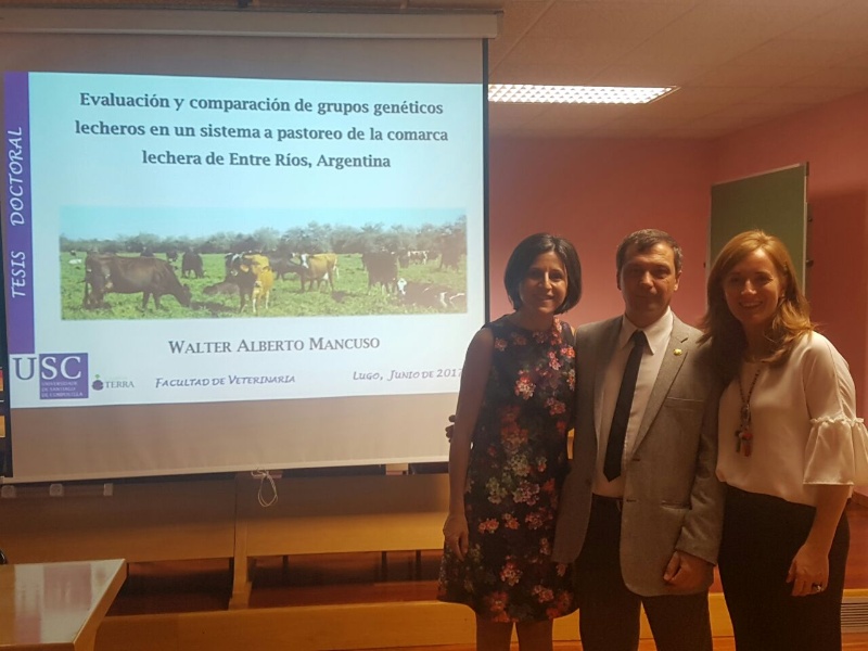 El ingeniero agrónomo argentino y profesional del Instituto Nacional de Tecnología Agropecuaria (INTA) de Argentina, Walter A. Mancuso, aborda en la tesis de doctorado que acaba de presentar en la Facultad de Veterinaria del Campus Terra de la USC bajo el título ‘Evaluación y comparación de grupos genéticos lecheros en un sistema a pastoreo de la comarca lechera de Entre Ríos, Argentina’, un exhaustivo estudio sobre grupos genéticos lecheros, a fin de dar respuesta a los ganaderos de la provincia lechera de Entre Ríos respecto a que cruce de vaca lechera se adapta mejor a las condiciones de pastoreo y de manejo de la zona.