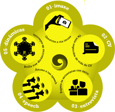 Este circuito se celebrará los días 28 y 29 de noviembre a partir de las 10.00 horas y hasta su inicio será posible formalizar la inscripción presionando en este enlace. Este entrenamiento tiene una duración de 2 horas para cada participante. El circuito ‘Talent´s Loop: potencia tu Talento’ proporciona al alumnado un laboratorio de empleo, un entrenamiento personal e individualizado en el que se simulará un proceso de selección real durante dos días en Lugo. De este modo, las personas participantes podrán poner en práctica los conocimientos adquiridos y solucionar las dudas que puedan surgir en la vida real. Este simulador se estructura en cinco pasos que cada participante realizará, recibiendo feedback personalizado por expertas y expertos para mejorar sus posibilidades de pasar con éxito un proceso selectivo.