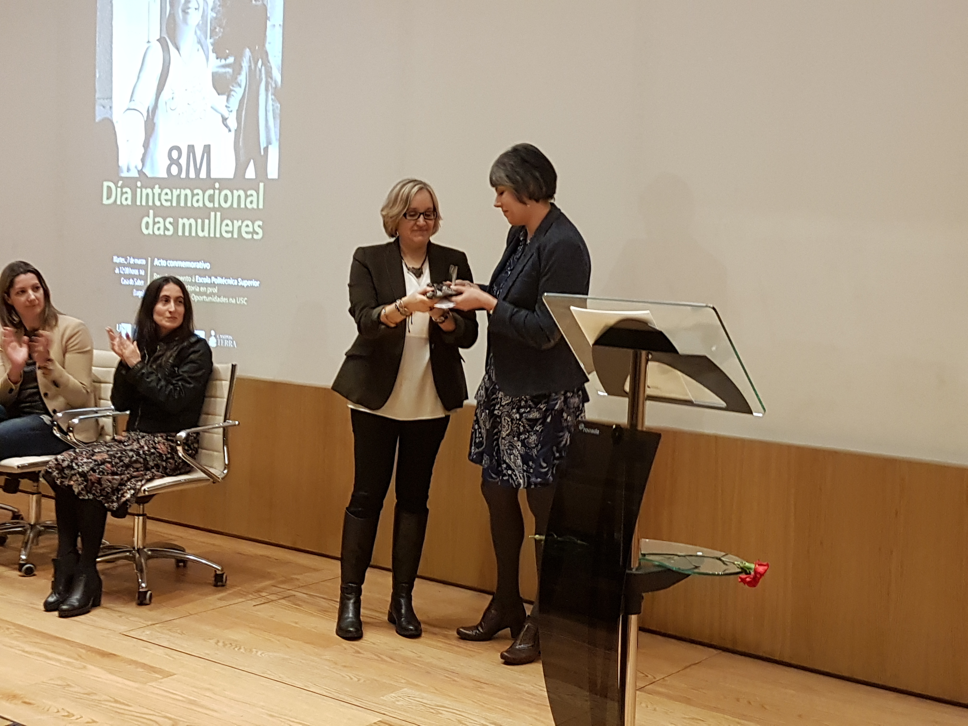 El Campus Terra acogió este miércoles la celebración que del Día Internacional de las Mujeres lleva a cabo cada año la Universidad de Santiago de Compostela a través de un acto que tuvo lugar en el auditorio de la Casa del Saber de Lugo y que sirvió de reconocimiento a la Escuela Politécnica Superior de Ingeniería por su trayectoria a favor de la igualdad de oportunidades en la USC.