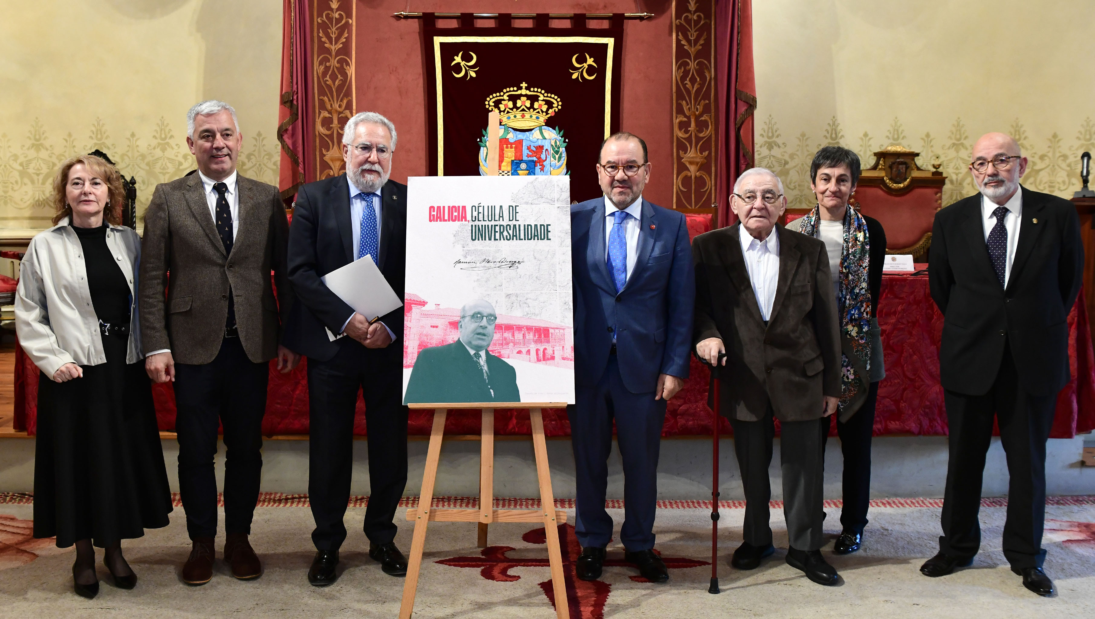 As autoridades posan co cartel da Cátedra institucional Otero Pedrayo. Foto: Santi Alvite