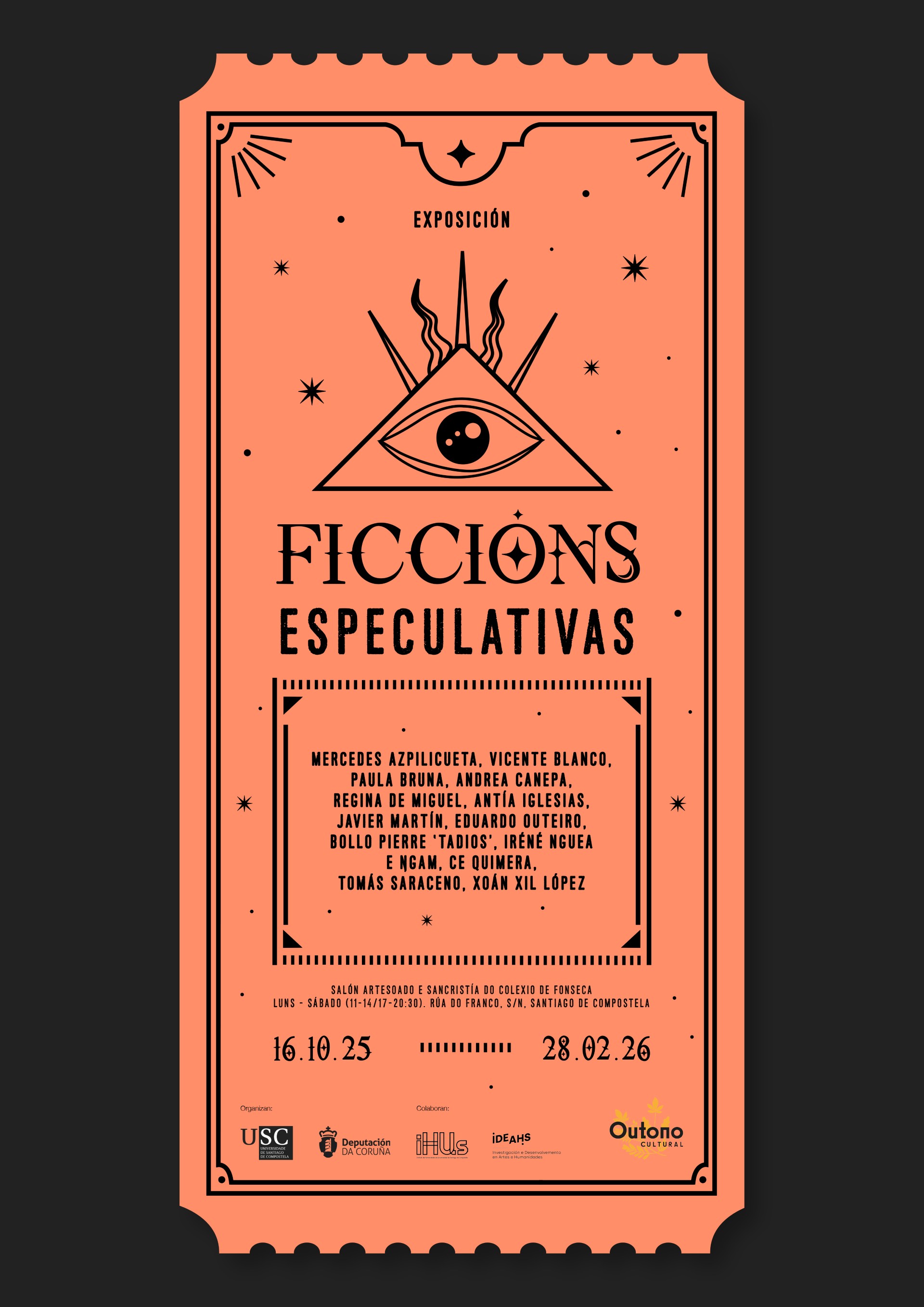 Igual que a ciencia comeza con hipóteses ficticias para entender o mundo, os artistas usan a fantasía, a ciencia ficción e o pensamento oracular para imaxinar futuros posibles. Nun contexto de cambio global, esta mostra destaca como a creación artística pode axudar a albiscar o porvir e inspirar transformacións, combinando elementos científicos, narrativos e máxicos.