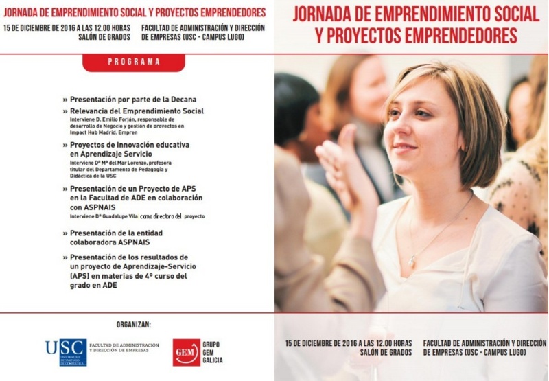 A Facultade de Administración e Dirección de Empresas do Campus Terra da USC acollerá este xoves, a partir das 12.00 horas, no salón de graos, unha xornada de emprendemento social e proxectos emprendedores, no marco da que diversos relatores explicarán e analizarán o alcance dalgunhas das iniciativas que está a desenvolver neste eido o centro universitario lugués.