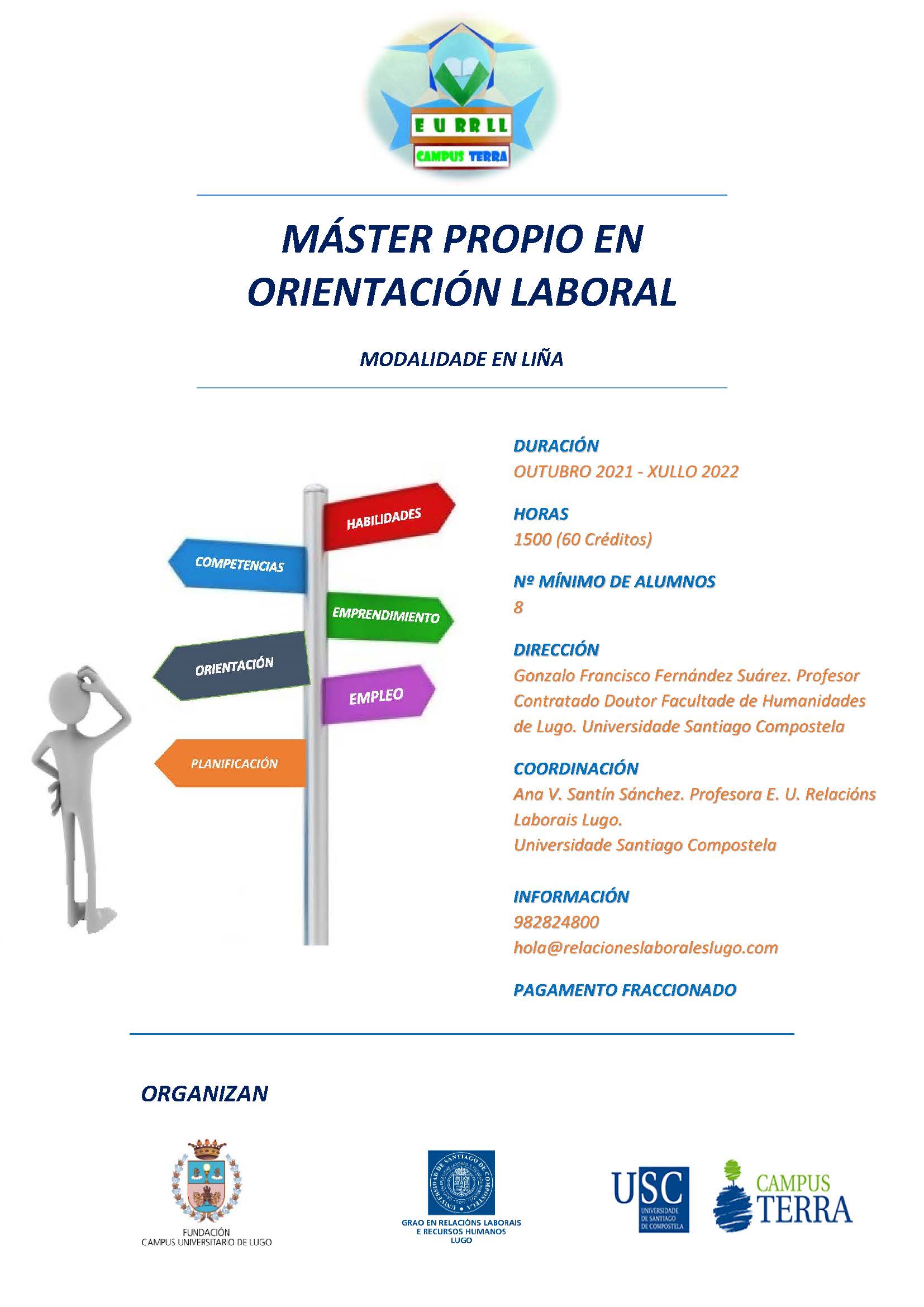 Impartido por docentes titulados en diversas áreas relacionadas coa orientación profesional no mercado de traballo e por profesinais en exercicio no campo da orientación.