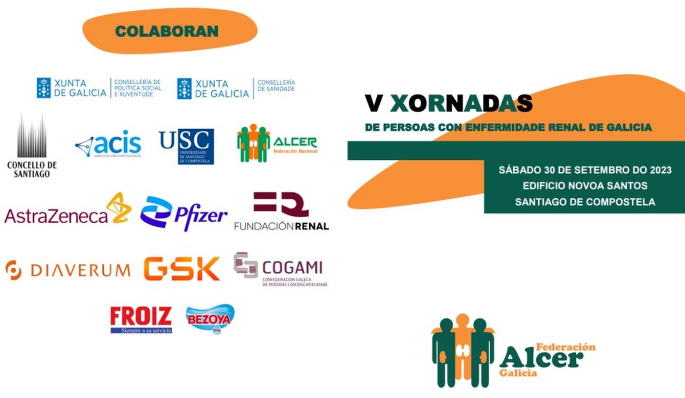 O próximo 30 de setembro a Federación ALCER Galicia celebrará as V Xornadas de Persoas con Enfermedade Renal de Galicia. O obxectivo das xornadas é dar á coñecer a actualidade e os avances da enfermidade renal crónica. Un foro para que os profesionais sanitarios, persoas con enfermidade renal e familiares poidan intercambiar opinións sobre aspectos relacionados coa enfermidade.