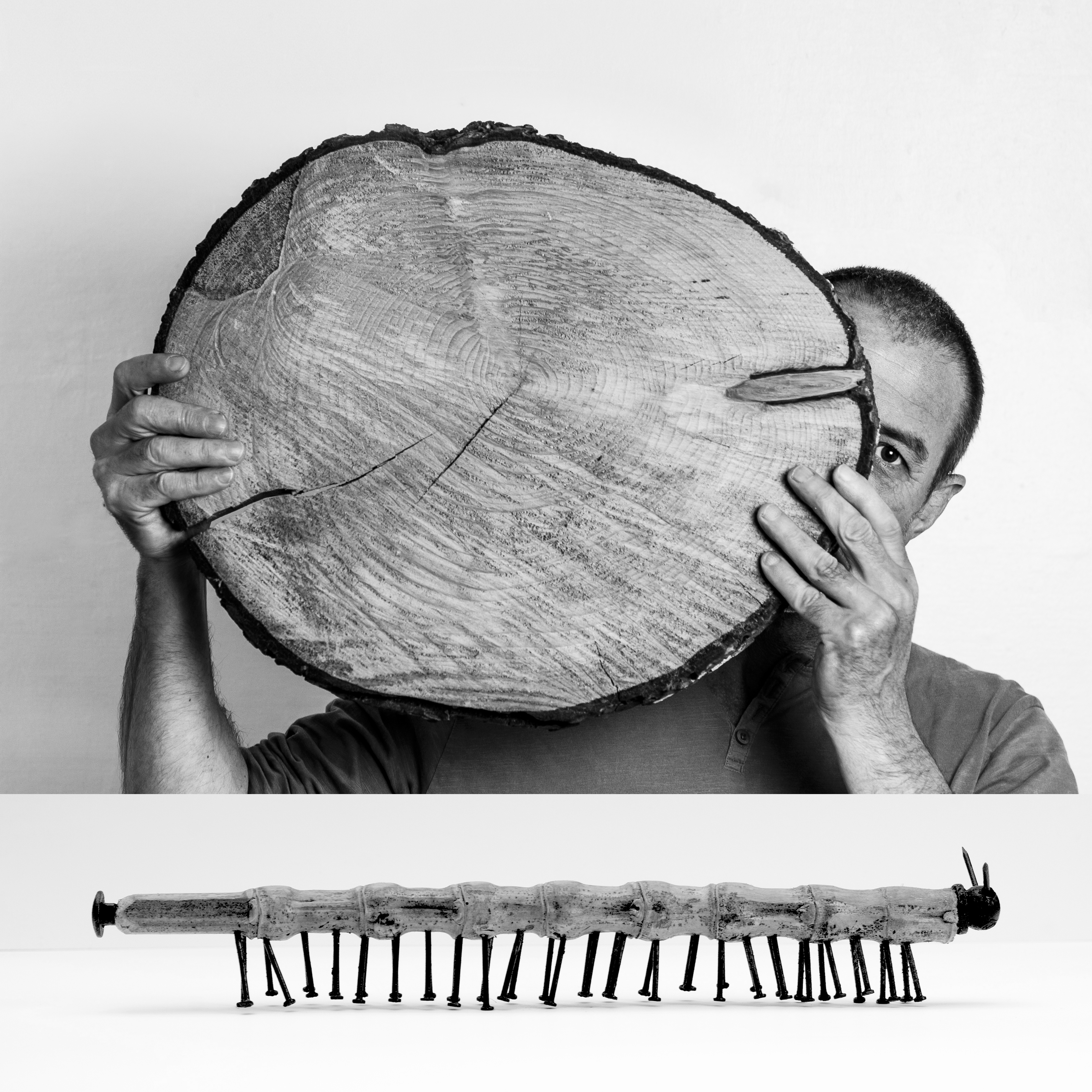 Tin (Ferrol, 1967) estuda bioloxía e dedica case toda a súa vida profesional á poda de árbores en altura. Do seu pai aprendeu a falar cos paxaros e amasar o pan; da súa nai, a descubrir a beleza das cousas pequenas. Pouco antes da pandemia comeza a darlle nova vida á madeira que o mar devolve ás praias galegas.