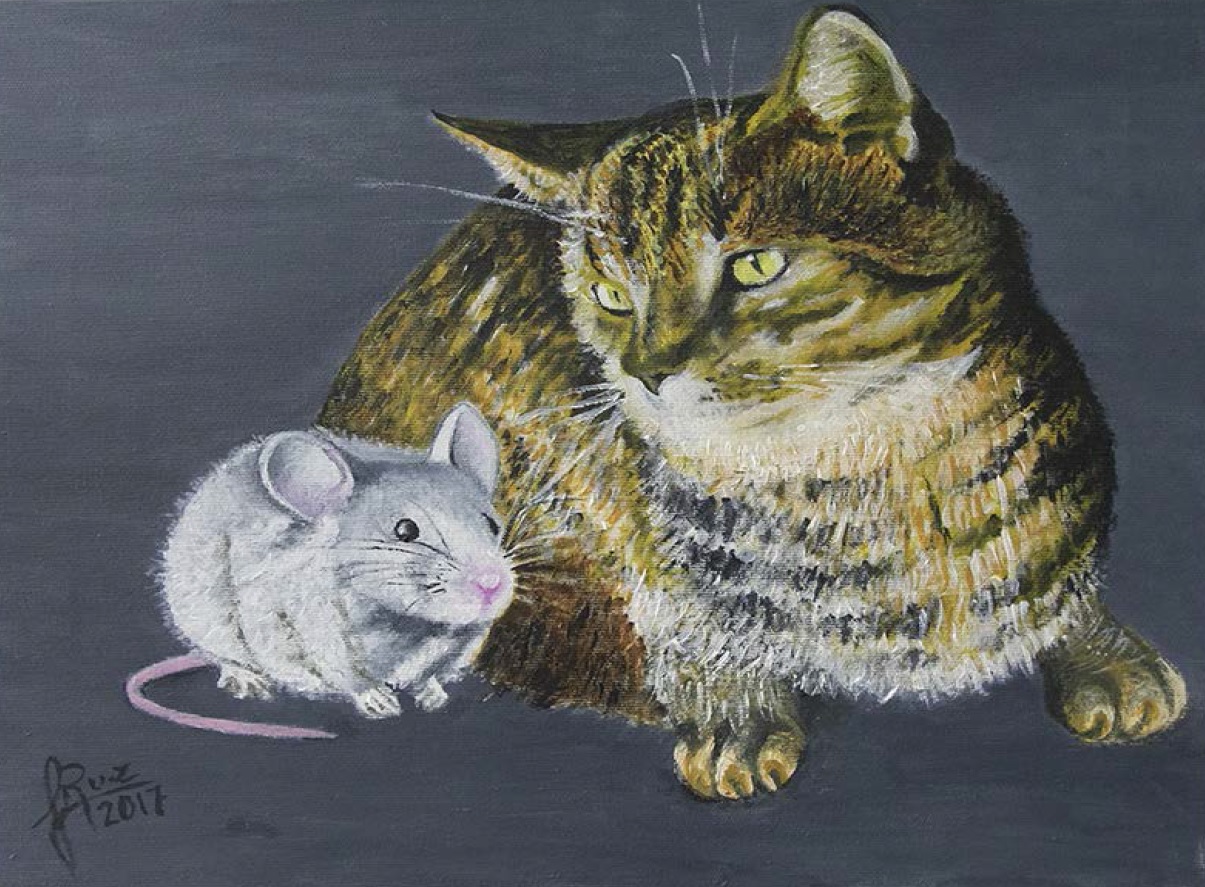 Nesta mostra exhíbense doce obras realizadas en acrílico sobre lenzo, nas que están representadas 24 especies de vertebrados da fauna galega e exótica. A autora condúcenos por un sendeiro onde estas especies conviven como "parellas imposibles". Unhas polas súas relacións antagónicas depredador-presa e outras porque están afastadas xeograficamente, habitando ecosistemas con características e clima moi diferentes.