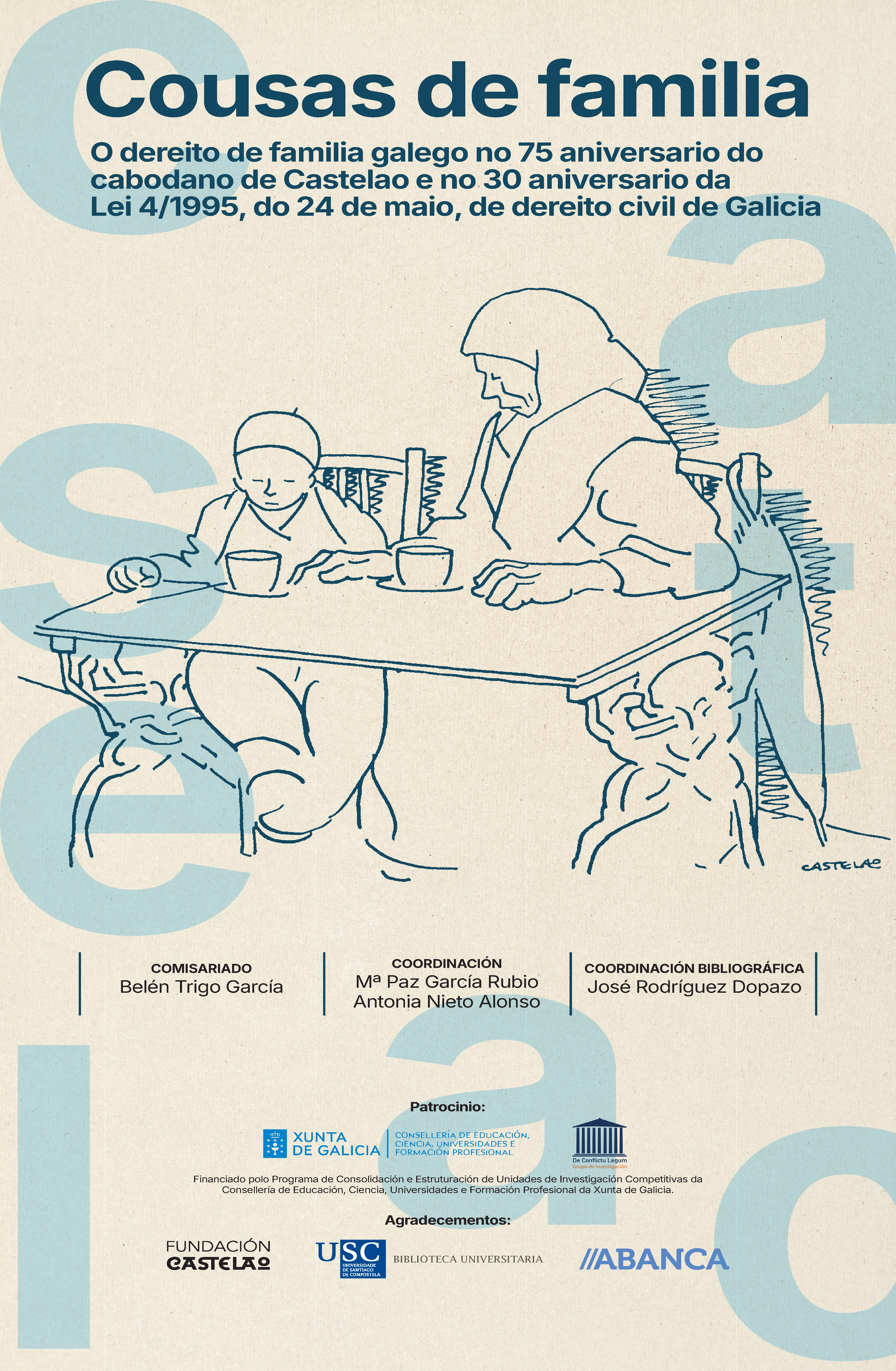 A exposición "Cousas de familia. O dereito de familia galego no 75 aniversario do cabodano de Castelao e no 30 aniversario da Lei 4/1995, do 24 de maio, do dereito civil de Galicia" está organizada con motivo do 75 aniversario do pasamento de Daniel Alfonso Rodríguez Castelao, o Ano Castelao 2025, e do 30 aniversario da lei 4/1995.