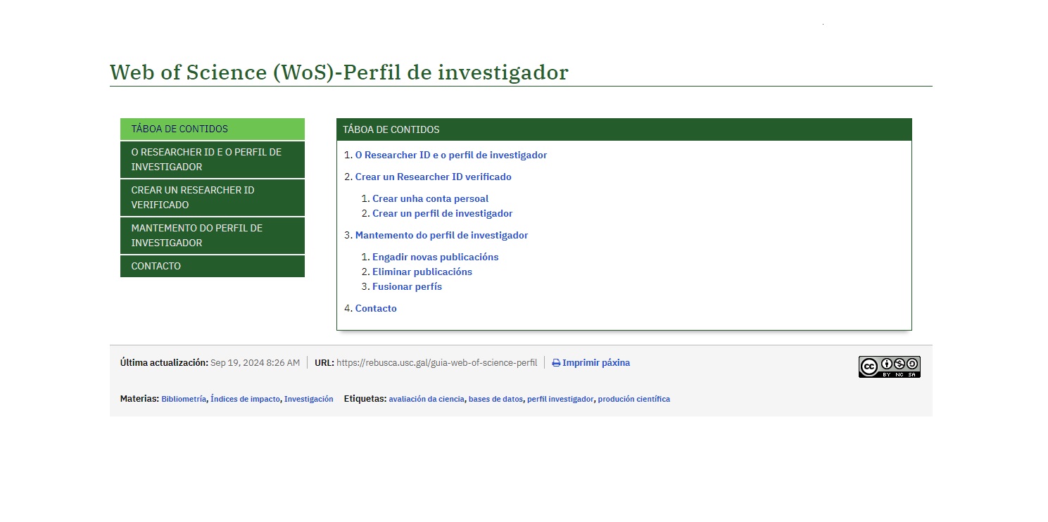 Nestes documentos, os investigadores poden consultar o proceso de creación do Researcher ID en Web of Science, así como a edición do identificador de Scopus, Scopus ID, xerado directamente pola base de datos a partir dos documentos dun determinado autor indexados nela.