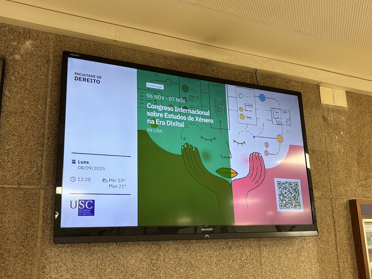 A USC dispón dun sistema de publicación de contidos e información a través das pantallas e monitores ubicados nos edificios universitarios que pertencen ao sistema de Cartelaría dixital.