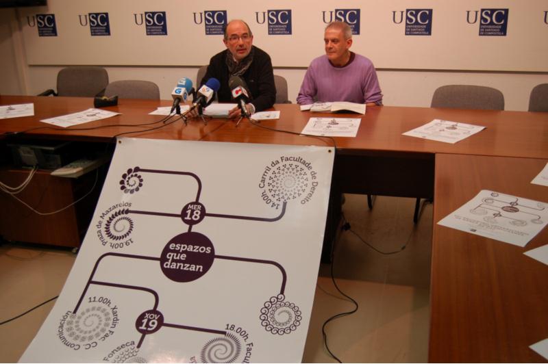 O vicerreitor de Estudantes, Francisco Durán, e o director do Espazo de Danza Juan Carlos Zaheran presentaron en Fonseca o programa que se desenvolverá en Compostela
