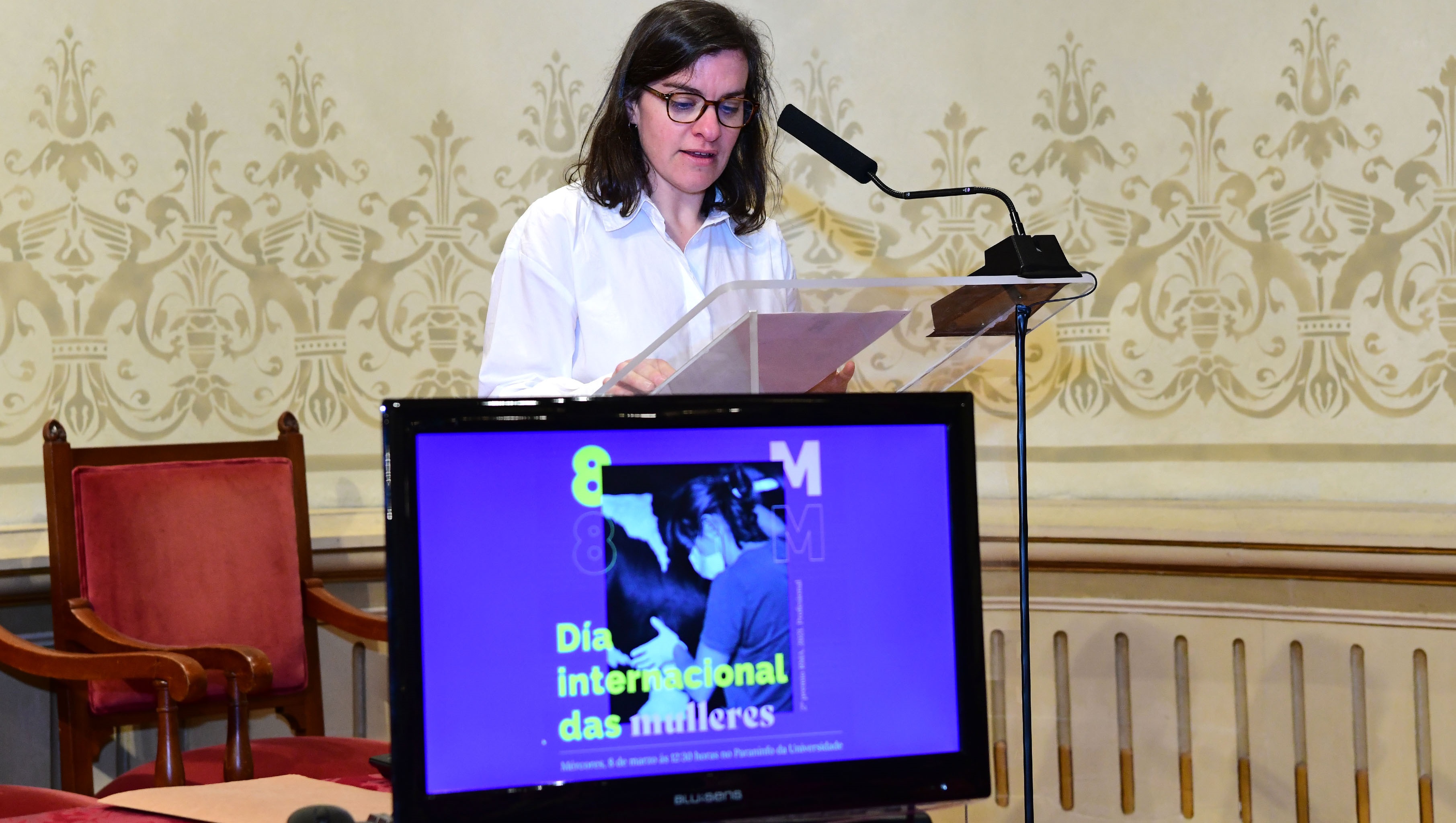 O acto institucional da USC estivo presidido polo reitor Antonio López e contou tamén coa participación da concelleira Marta Abal. Na sesión entregouse unha mención honorífica a ‘Armela. Rede de investigación en igualdade, dereitos e Estado social’ pola súa “consolidada traxectoria de investigación dentro dos estudos de xénero e actividades formativas con perspectiva de xénero, na que convén destacar o desenvolvemento de proxectos sobre políticas públicas de igualdade e a constante produción académica sobre diversos aspectos da relación de igualdade, política e dereitos sociais”.