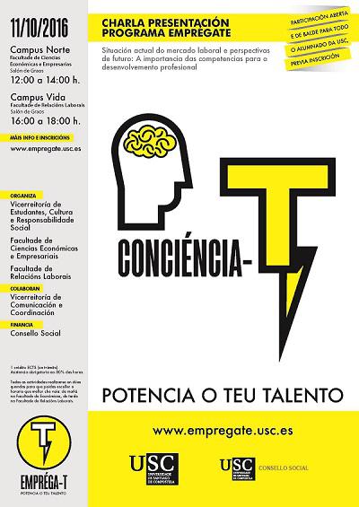 O martes 11 arranca o proxecto ‘Emprega-T: as 8 T’s do talento’ na USC, concibido como un programa que traballará as habilidades brandas do seu estudantado de cara a facilitarlle a súa entrada ao eido profesional. O prazo de inscrición xa está aberto en www.empregate.usc.es, onde se poderá escoller o horario que mellor se adapte ás necesidades do alumnado, ben pola mañá na Facultade de Económicas ou ben pola tarde en Relacións Laborais.