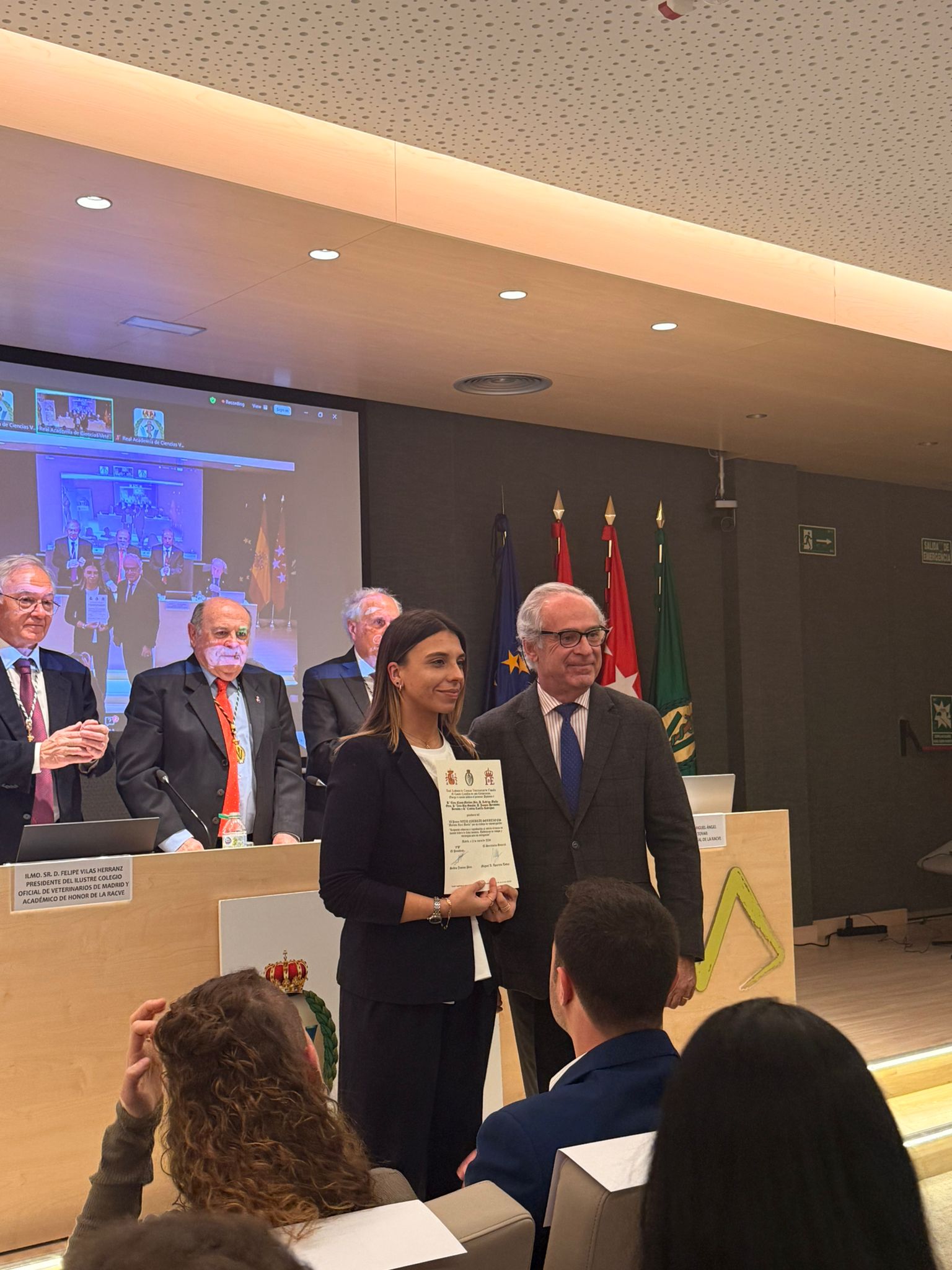 A Real Academia de Ciencias Vetrinarias de España recoñeceu esta semana co XI Premio Vetia Natural Solutions (Mariano Illera Martín) unha investigación da investigadora do IBADER e doutoranda do Departamento de Patoloxía Animal da Facultade de Veterinaria do Campus Terra, Elena Niceas Martínez Díez, xunto cos profesores Joaquín Fernández Bermúdez, Cristina Castillo Rodríguez e Rodrigo Muiño Otero