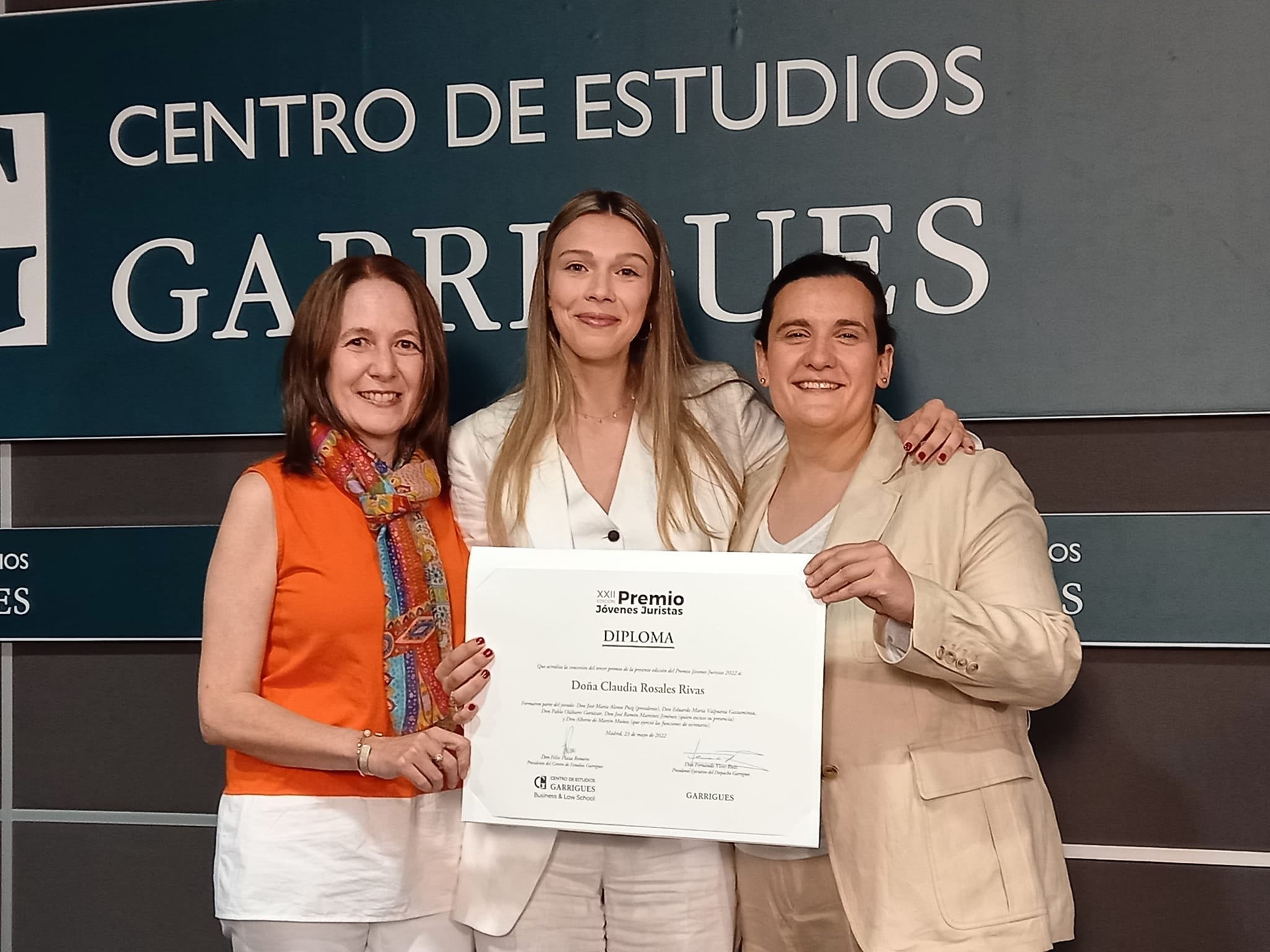 A vixésimo segunda edición dos premios que distinguen a mocidade xurista e que outorga o Centro de Estudos Garrigues recoñeceu na súa edición de 2022 a Claudia Rosales Rivas, alumna do dobre grao en Dereito e Relacións Laborais, co terceiro premio. O galardón, dirixido a estudantes do último curso do grao, outórgase á persoa que obteña unha mellor cualificación nunha proba avaliada por un xurado de persoas expertas.