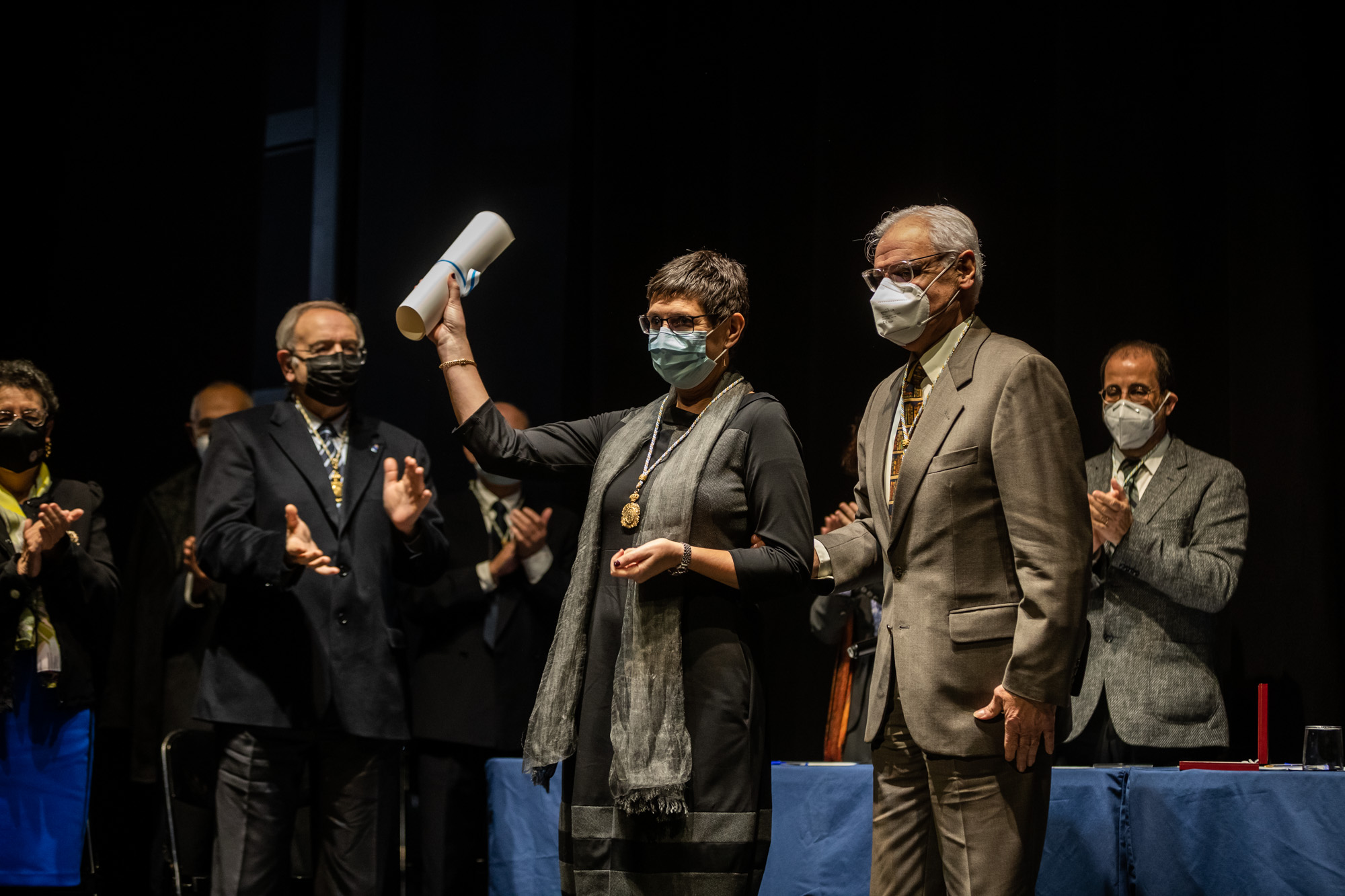 Que hai no nome dunha persoa, nun apelido, no nome dun lugar? Que nos din de nós como persoas e como sociedade e que legado nos transmiten estas palabras? A filóloga Ana Boullón ingresou este sábado na Real Academia Galega (RAG) cun discurso centrado en dar resposta a estas e outras preguntas arredor da onomástica baixo o título ‘Todos os nomes: identidade, pobo, país’. A profesora da USC, investigadora de referencia neste campo de estudo, profundou na vertente lingüística e mais na dimensión social de nomes, apelidos e topónimos nun acto que se desenvolveu no Teatro Cine Elma da súa localidade natal, A Pobra do Caramiñal. A nova académica rendeulle homenaxe á súa terra na listaxe de nomes da infancia co que pechou o seu discurso. Nomes propios, apelidos, alcumes ou topónimos que demostran que a través deles trazamos as biografías propias e colectivas, afirmou.