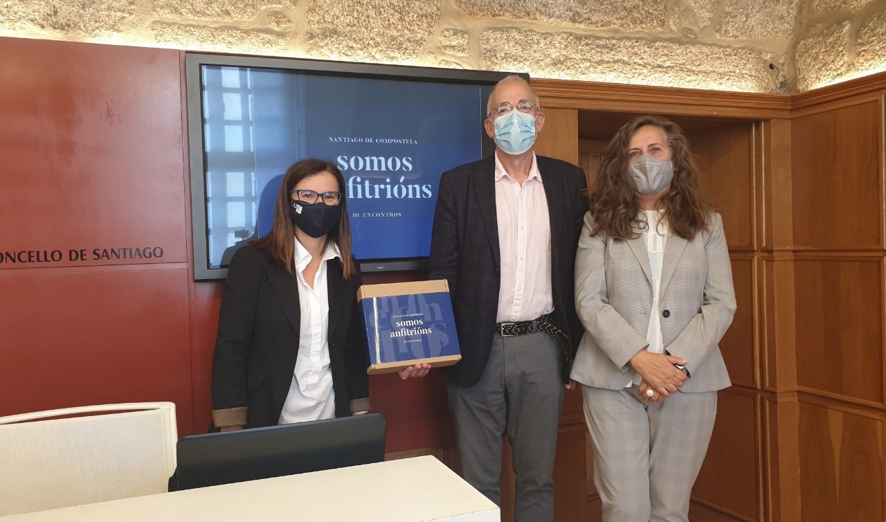 A campaña ‘Somos Anfitrións’ ten como obxectivo a reactivación do sector congresual en Santiago a curto e medio prazo, tal e como se está producindo nos últimos meses co turismo tradicional na cidade. Esta iniciativa diríxese a promotores da propia cidade para animalos a impulsar a organización de Congresos e Eventos relacionados coas súas áreas de traballo, lembrándolles que teñen a súa disposición os servizos do Santiago de Compostela Convention Bureau. O concelleiro de Turismo, Sindo Guinarte, tamén tomou parte no acto xunto á xerente de Turismo de Santiago, Flavia Ramil.