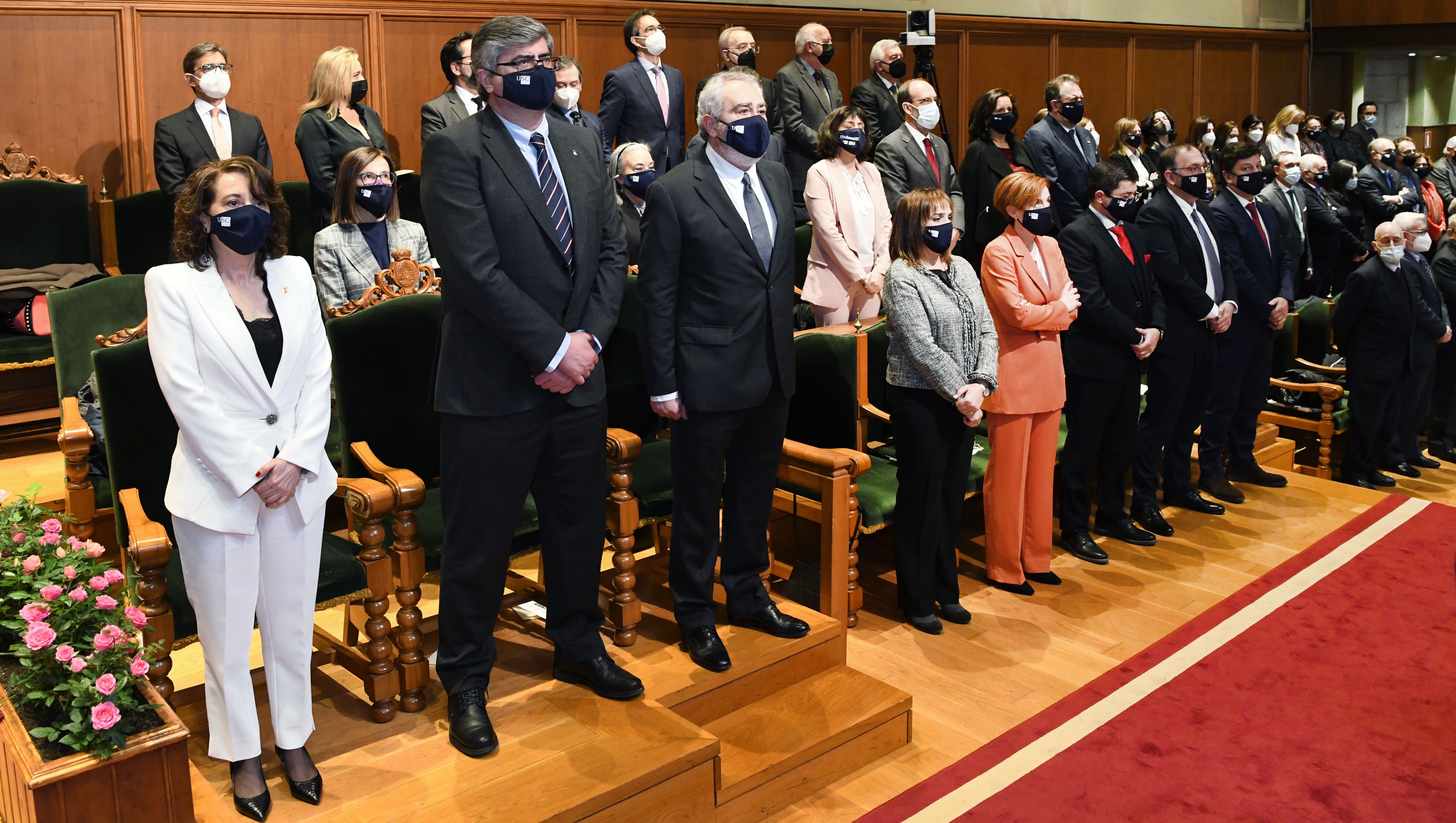Reiterando o seu “compromiso ilusionado coa Universidade”, deste xeito tomou posesión este martes 22 o profesor Antonio López do seu cargo como reitor da USC logo de ser reelixido nas eleccións do pasado 23 de febreiro. Coa vontade de seguir contribuíndo, dende o goberno da institución, a “formar cidadás e cidadáns críticos, cultos e libres”, Antonio López afondou nos retos de futuro logo de “catro anos marcados sen dúbida pola COVID-19” e nos que a institución “quixo, deliberadamente, facerse presente neste momento de crise para reivindicar o seu papel de formadora, pero tamén de xeradora dun coñecemento que, lonxe de esconderse nunha torre de marfil, acaba sendo motivo de esperanza para unha sociedade atribulada”, dixo. O relevo xeracional, as infraestruturas, os recursos financeiros, a oferta docente, o plan de financiamento, o proxecto de Cidade da Saúde, así como a transformación dixital constituíron os eixos sobre os que o reitor artellou un discurso inspirado na afirmación do tamén reitor Rodríguez Cadarso, “traédeme proxectos e cifras”.