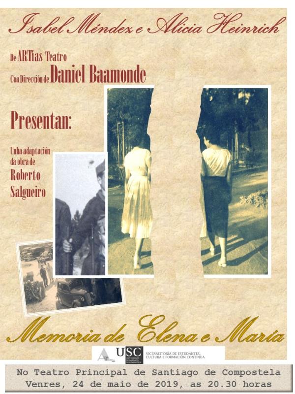 A compañía da USC ARTías Teatro presenta este venres 24 no Teatro Principal unha adaptación da obra de Roberto Salgueiro ‘Memoria de Elena e María’ que dirixiu Daniel Baamonde.
