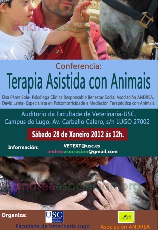 Responsables da asociación Andrea impartirán este sábado 28 ás 12.00 horas no auditorio da Facultade de Veterinaria de Lugo unha charla sobre a terapia asistida con animais.