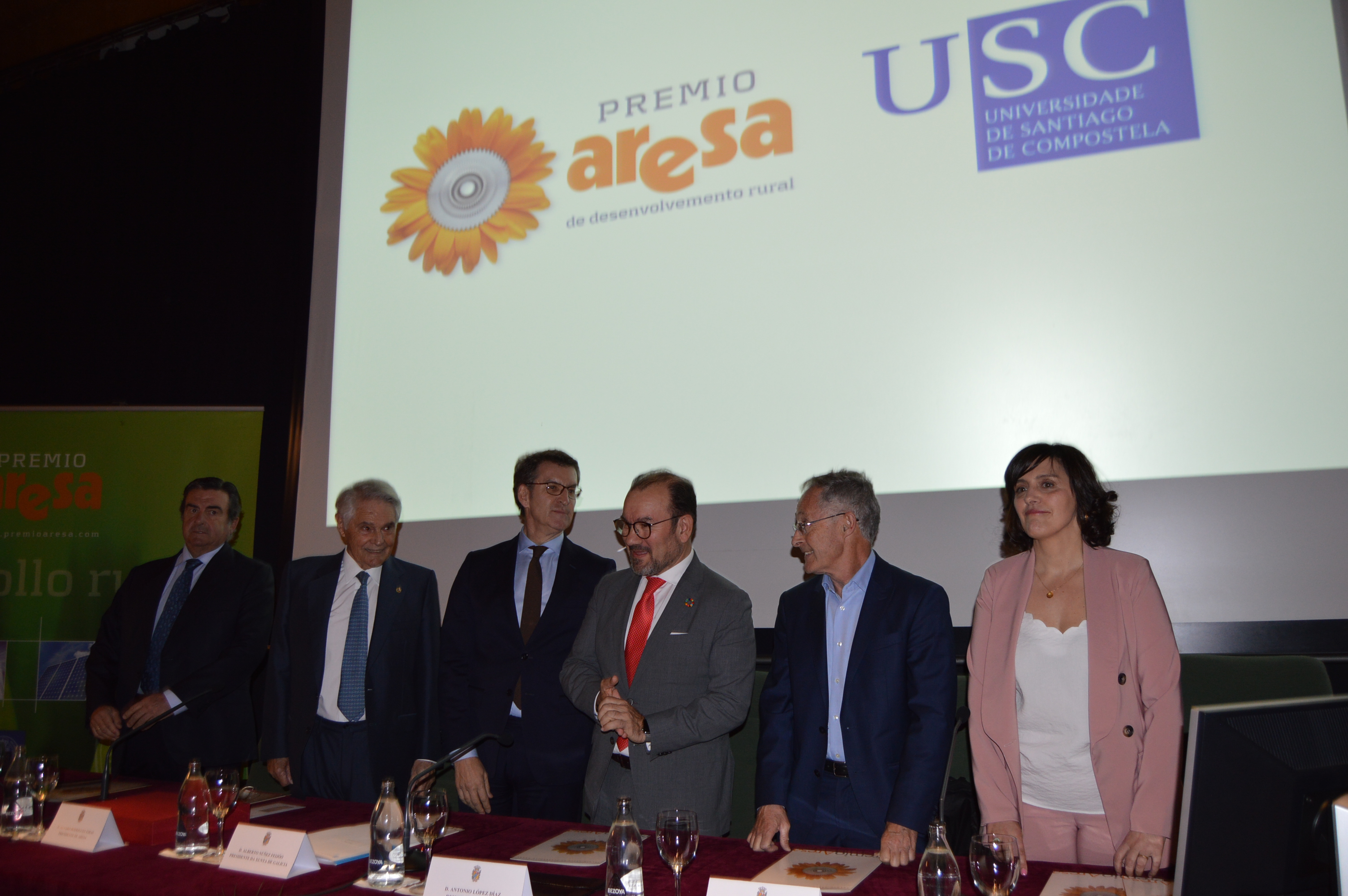 A alcaldesa de Lugo, Lara Méndez; o conselleiro de Medio Rural, José Vázquez; a secretaria da Mesa do Parlamento de Galicia, Raquel Arias; a vicesecretaria da Mesa do Parlamento de Galicia, Concepción Burgo; o presidente da Deputación Provincial de Lugo, José Tomé; o secretario Xeral de Universidades, José Alberto Díez de Castro; a vicerreitora de Organización Académica da USC, Celia Besteiro; os adxuntos á Vicerreitoría de Coordinación do Campus Elvira López Mosquera e Jesús Varela Zapata, e o ex reitor da USC Darío Villanueva, tamén asistiron a esta cerimonia de entrega do XX Premio Aresa.