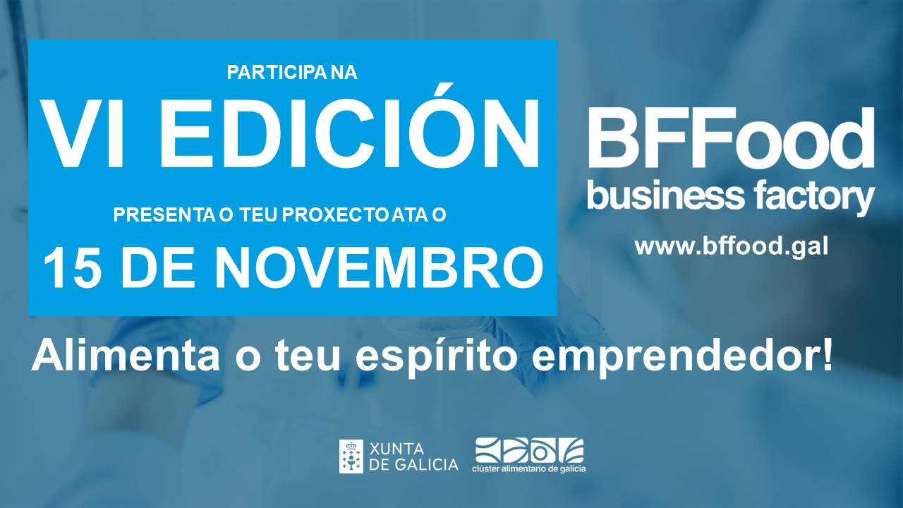A aceleradora vertical do sector alimentario de Galicia, Business Factory Food (BFFood), mantén aberto o prazo de presentación de proxectos para optar a formar parte da súa sexta edición ata as 14.00 horas do 15 de novembro. A USC colabora como socia desta iniciativa da Xunta de Galicia e que dinamiza o Clúster Alimentario de Galicia (Clusaga).