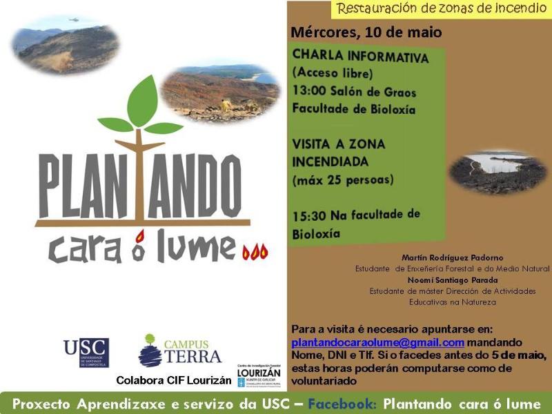 O proxecto ‘Plantando cara ó lume’ é unha iniciativa a través da que os seus promotores tratan de dar a coñecer os posibles efectos dos incendios no noso territorio, ademais de propoñer solucións para minimizar os riscos, así como para rehabilitar as áreas afectadas.