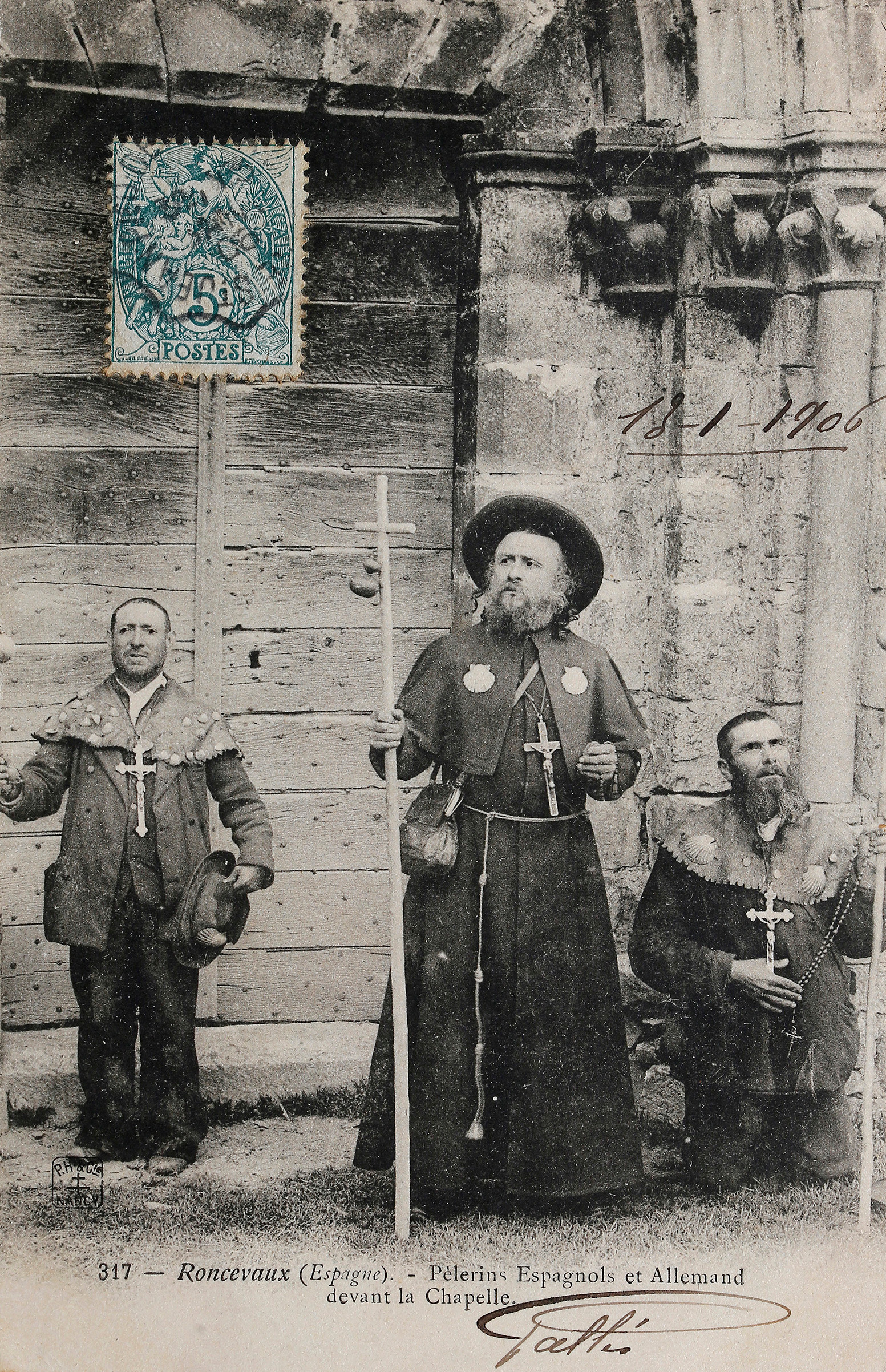 Peregrinos en Roncesvalles en 1906. Imaxe do arquivo do proxecto sobre Georgiana Goddard King