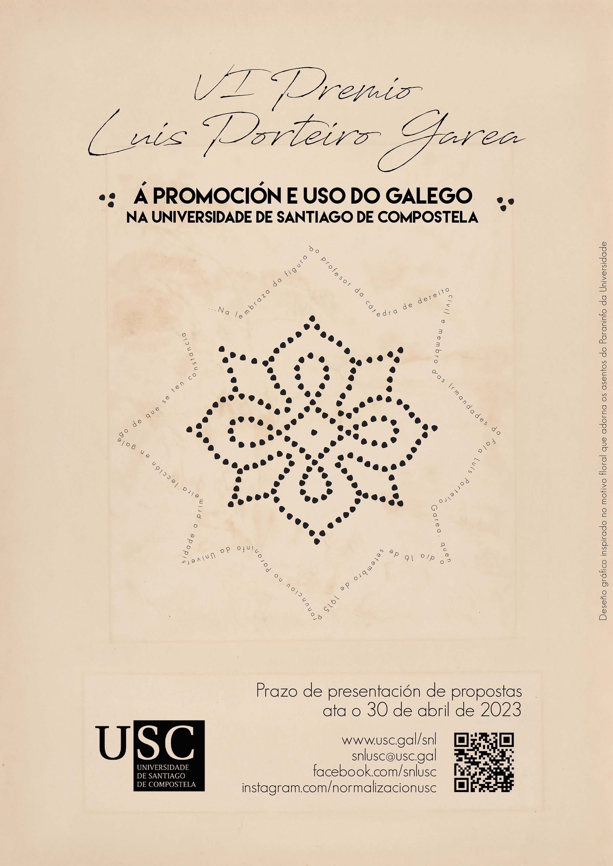 A USC acaba de convocar a sexta edición do Premio Luís Porteiro Garea que lembra a figura do profesor da cátedra de Dereito Civil e membro das Irmandades da Fala, Luís Porteiro Garea, quen o día 16 de setembro de 1915 pronunciou a primeira lección en galego na Universidade de que se ten constancia. Con este premio quérese distinguir a iniciativa, o traballo ou a traxectoria daquelas persoas, entidades ou colectivos, tanto actuais como pasadas da USC (alumnado, persoal de administración e servizos, persoal docente e investigador), que contribuíran á normalización da lingua galega na propia USC.