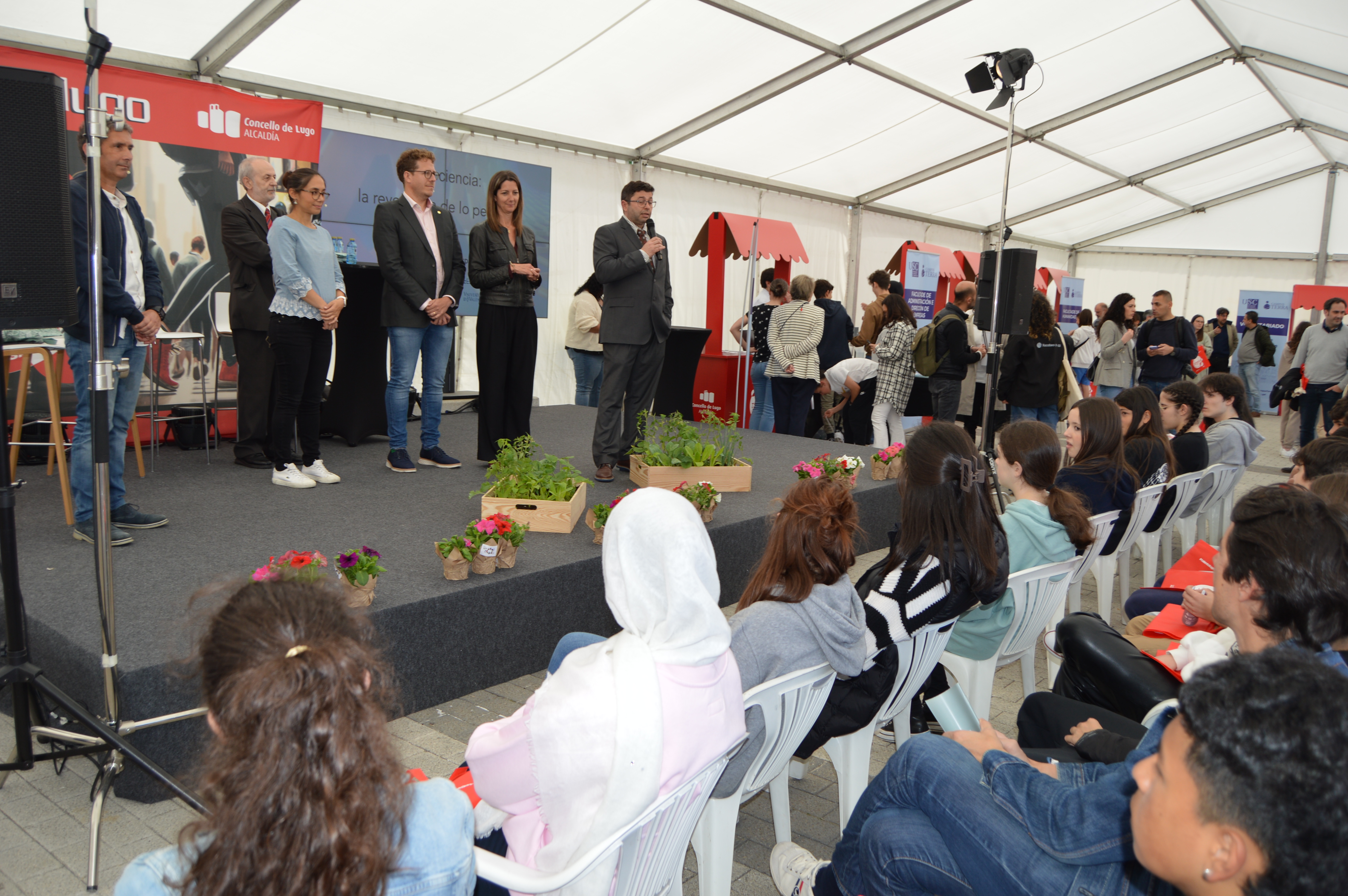 A II Feira de Emprendedores de Lugo congregou na Praza da Horta do Seminario centos de estudantes preuniversitarios e público en xeral, nunha xornada na que participaron numerosos docentes e investigadores da sede universitaria luguesa, ademais do vicerreitor de Organización Académica e Campus de Lugo, Francisco Fraga, e a delegada do Reitor para o Campus Terra da USC, Elvira López Mosquera