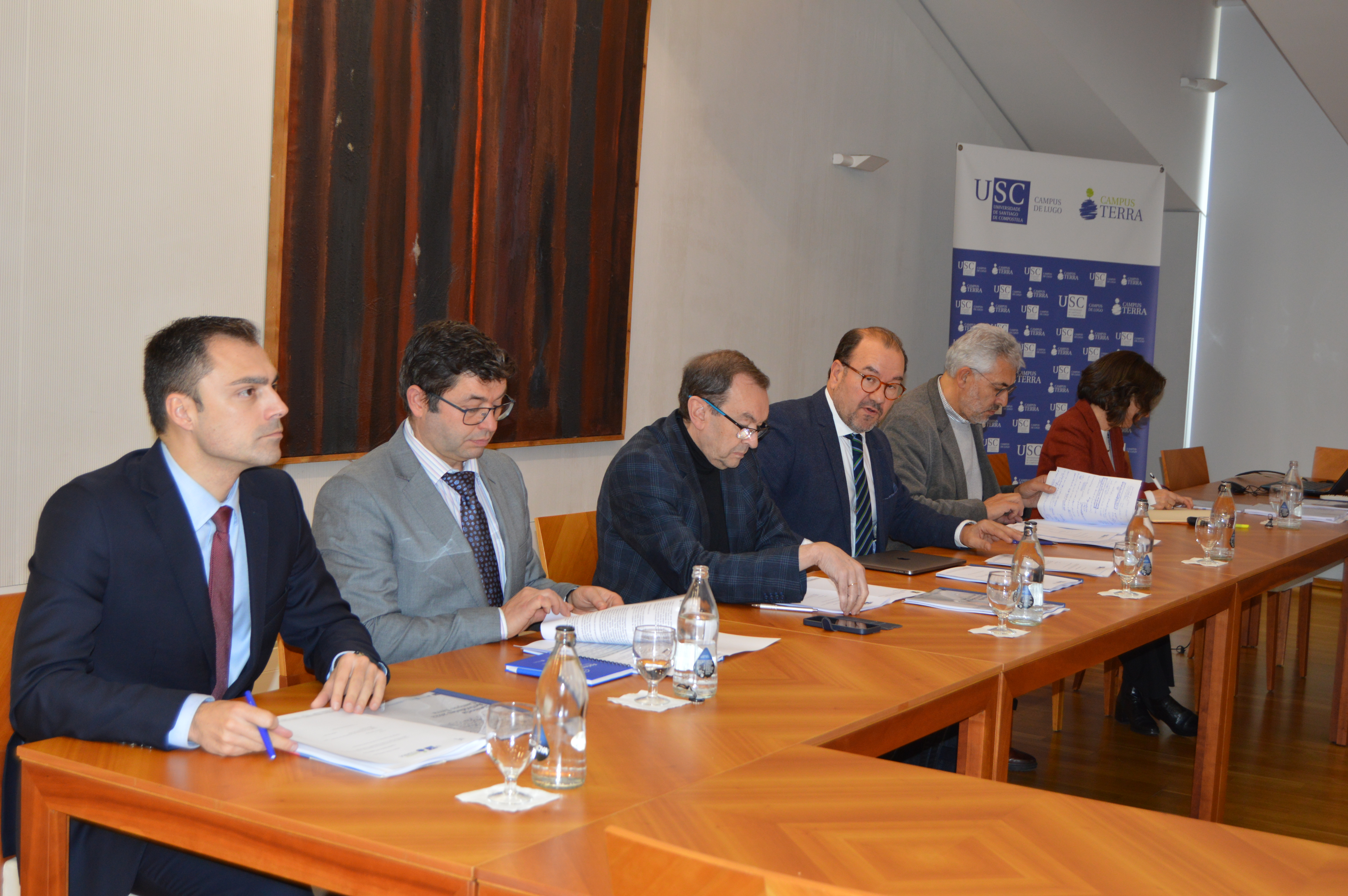 O secretario Xeral de Universidades da Xunta de Galicia, José Alberto Díez de Castro; así como os vicerreitores de Organización Académica e Campus de Lugo, Francisco Fraga; os seus homólogo de Política Científica, Vicente Pérez Muñuzuri, e de Titulacións e Interncional, María José López, e o Xerente da USC, Xavier Ferreira, tamén participaron nesta xuntanza do órgano de gobernanza do Campus Terra, á que tamén asistiron os responsables políticos locais Miguel Fernández e Pablo Rivera, en representación do Concello de Lugo e da Deputación Provincial de Lugo, respectivamente.