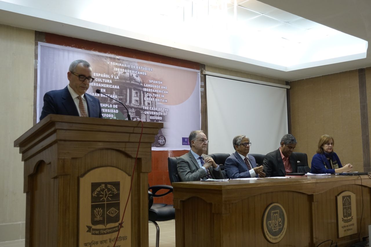 A Cátedra Inditex de Lingua e Cultura Españolas da Universidade de Daca, dirixida no bienio 2019-2021 por Santiago Fernández Mosquera, catedrático da USC, acaba de celebrar o V Seminario de Estudos Iberoamericanos. O obxectivo deste seminario internacional foi levar a Bangladesh a visión que da lingua e a cultura española ten a Universidade de Oxford.