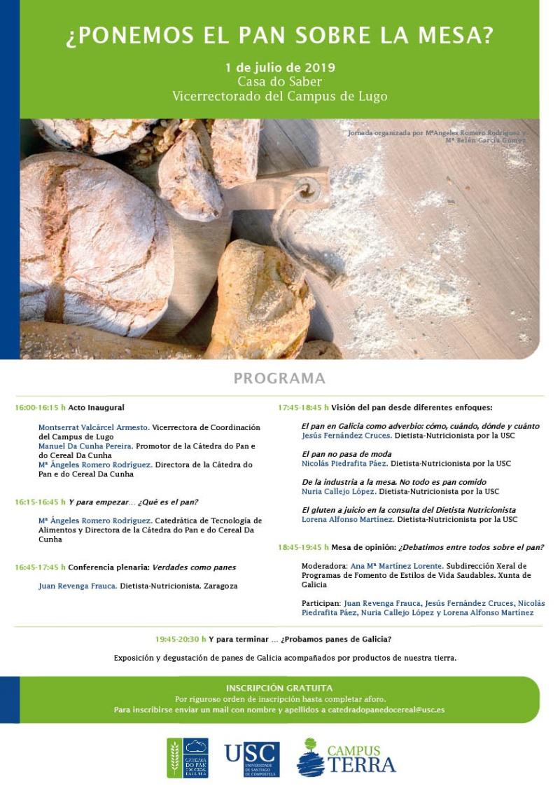 A Cátedra do Pan e do Cereal do Campus Terra da USC conmemora o terceiro aniversario da súa constitución coa celebración da xornada ‘¿Poñemos pan sobre a mesa?’, un foro informativo e de divulgación que se desenvolverá o 1 de xullo na Casa do Saber de Lugo e que rematará cunha degustación de pans de Galicia acompañados doutros produtos da terra.