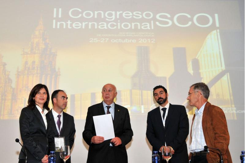 O reitor Juan Casares presidiu a inauguración do II Congreso Internacional da Sociedade Científica de Odontoloxía Implantolóxica (SCOI) que ata este sábado 27 se celebra en Compostela coa participación de profesionais, representantes das principais empresas dos sector ou dous dos expertos con máis investigacións realizadas nesta área, en calidade de relatores. Na cerimonia de inauguración interviñeron ademais a vicedecana da Facultade de Medicina e Odontoloxía, Inmaculada Tomás; o presidente da SCOI, Pablo Galindo; e o presidente deste segundo Congreso, Gonzalo López Castro. Inmediatamente despois da inauguración oficial, o catedrático Ángel Carracedo pronunciou unha conferencia sobre a relación entre a odontoloxía e a xenética. Preto de medio centenar de relatores de Alemaña, Bélxica, Brasil, Corea, Dinamarca, Estados Unidos, Francia, Italia, Suíza e Taiwán traen a debate estes días en Compostela as principais novidades que no campo da práctica clínica e a investigación se están a desenvolver na implantoloxía odontolóxica. O obxectivo é defender e divulgar a ciencia e, sobre todo, trasladala ao día a día, mellorando a calidade da atención aos pacientes sen esquecer novos campos para a investigación. Como explicou o presidente do comité organizador este é “o congreso máis importante do ano no eido da implantoloxía” o que na súa opinión xustifica que ao longo destes dous días se dan cita en Compostela “a elite da implantoloxía española”. Xunto aos investigadores e especialistas tamén estarán presentes as máis representativas casas comerciais do sector. Neste senso, Gonzalo López lembrou que España é o segundo país do mundo que máis implantes odontolóxicos consume. Os avances tecnolóxicos na cirurxía guiada, próteses implantarias biolóxicas, a patoloxía periimplantaria, rexeneración ósea, enxertos óseas ou complicacións implantolóxicas son algúns dos temas que se están a tratar co programa deseñado. Ademais das sesións científicas, o Congreso contempla dous cursos especializados dirixidos a hixenistas e protésicos e dous obradoiros clínicos que estarán dedicados a cirurxía piezoeléctrica e á elevación do seno.