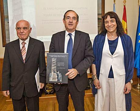 Colmenero, Losada e Goy, na presentación do libro 'O faro romano de Brigantium Flavium, Torre de Hércules da Coruña'. Foto La Opinión