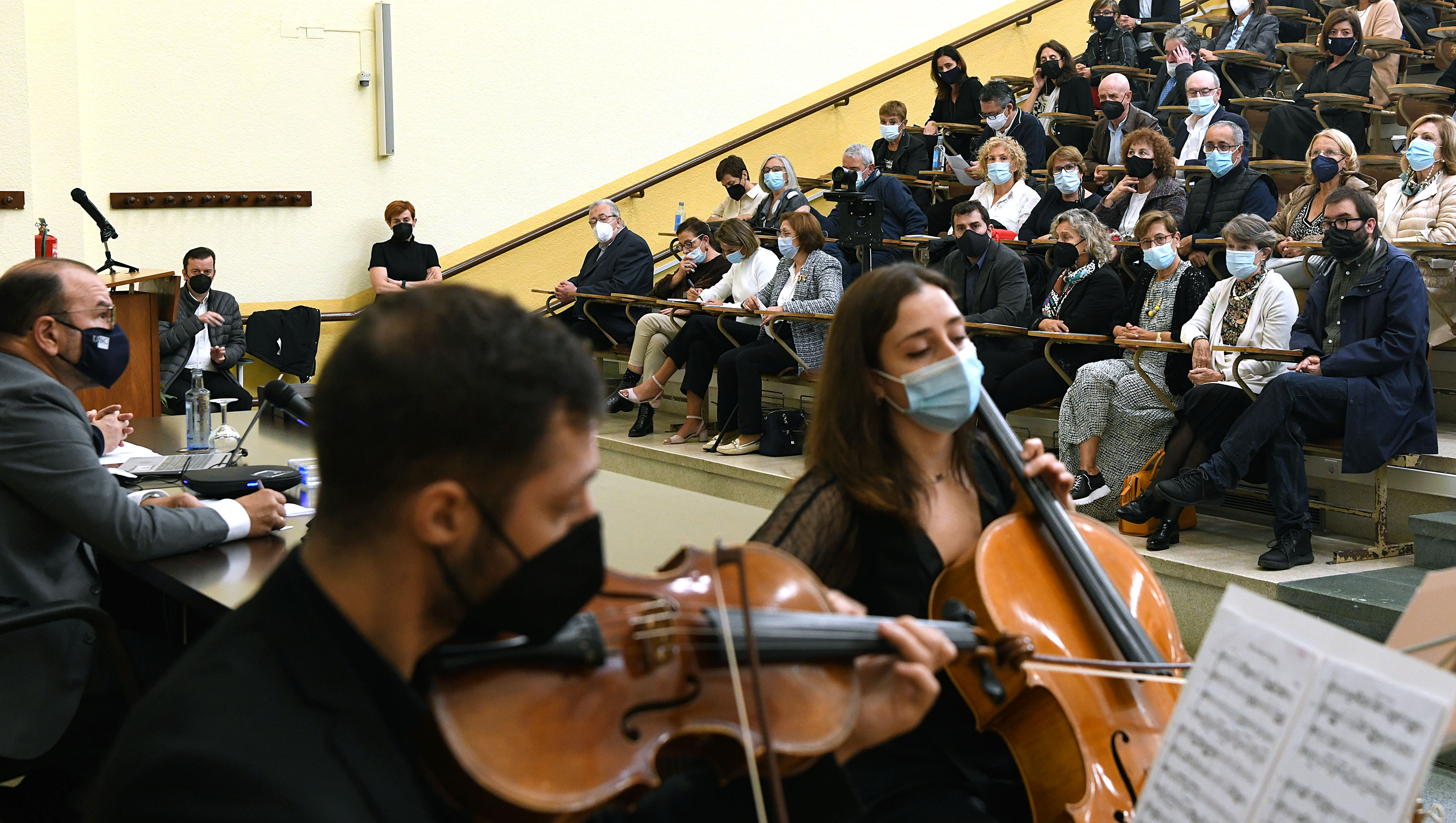 O concorrido acto, musicado polo Cuarteto Dickinson e desenvolvido na Aula A da facultade, contou tamén coa presenza de representantes doutras institucións e corpos, como o secretario xeral de Universidades, José Alberto Díez de Castro, o conselleiro maior do Consello de Contas, José Antonio Redondo López e o ex-presidente da Xunta de Galicia, Emilio Pérez Touriño.