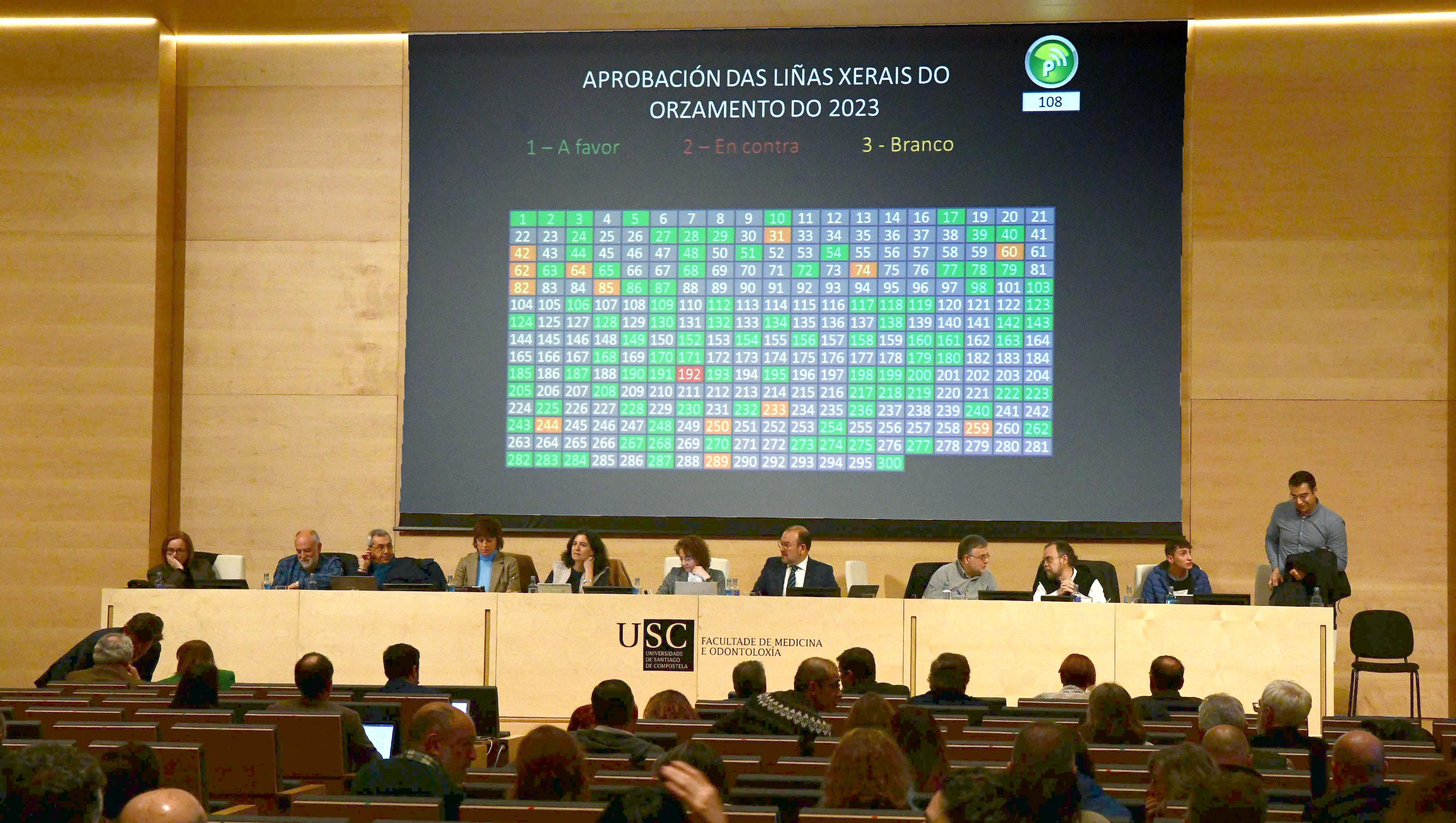 No marco da información económica tamén aprobada, o Claustro deu igualmente o seu respaldo ás Liñas Xerais da Programación Plurianual 2023-2026 con 101 votos a favor, 3 en contra e 31 en branco. A proposta mantén as ideas esenciais e eixes de acción presentados polo actual equipo no programa electoral. Como se especificou, a estes engádense os plans de mitigación e adaptación ás posibles variacións dunha evolución negativa da economía para os vindeiros anos, particularmente no relativo a infraestruturas, nas que cómpre ter en conta como prioridade a procura da ecoefiencia enerxética, apunta o documento. A planificación complementarase coa elaboración do Plan Estratéxico da USC durante 2023.