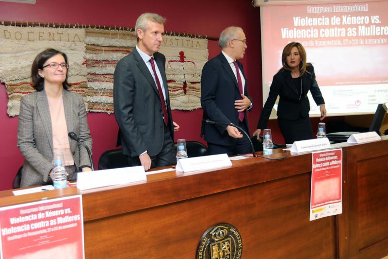 Un congreso internacional aborda este martes 27 e o mércores 28 na Facultade de Dereito o tema ‘ Violencia de xénero Vs violencia contra as mulleres’ baixo a coordinación da profesora Raquel Castillejo. O vicepresidente da Xunta de Galicia, Alfonso Rueda, participou no acto inaugural celebrado na facultade compostelá xunto coa vicerreitora de Comunicación, Cultura e Servizos, Mar Lorenzo Moledo; o decano do centro, Gumersindo Guinarte Cabada; a profesora Raquel Castillejo; e o profesor da Universidade de Barcelona, Vicente Pérez Daudí.