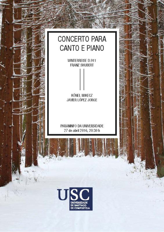 O Paraninfo da Universidade, na Facultade de Xeografía e Historia, acolle este mércores 27 un novo recital. Nesta ocasión, serán Javier López Jorge e Kornél Mikecz quen interpreten ás 20.30 horas a Winterreise D. 911 de Franz Schubert (1797-1828).