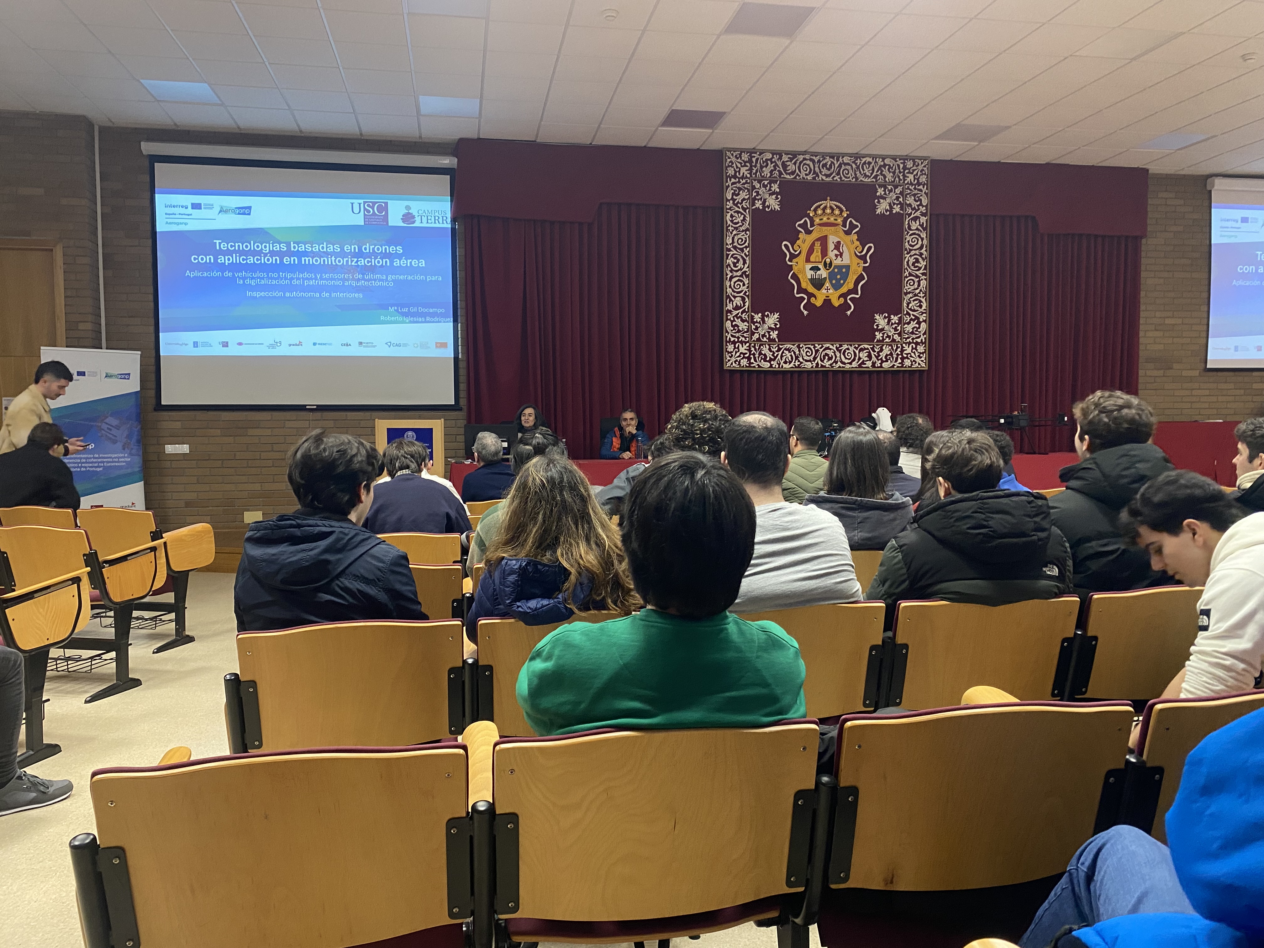 Na xornada participaron Marta López Alonso, directora comisaria de iTerra; Mariluz Gil, coordinadora pola USC do proxecto AEROGANP; Humberto Michinel, IP de AERORGANP; Humberto Michinel, da UVigo; Anne Gosset, da UDC; Enrique Ventas, do Centro Tecnolóxico Nacional; Alexandre Oliveira, do Centro de Robótica e Sistemas Autónomos de Portugal; Roberto Iglesias, da USC; e Gustavo Dias,  da Universidade do Minho (Portugal).
