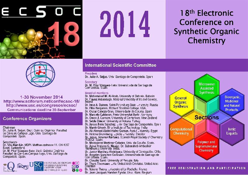 A décimo oitava edición da Conferencia Electrónica de Química de Síntese Orgánica (ECSOC 18), un congreso virtual promovido polo grupo de investigación de Novas Metodoloxías Sintéticas da USC, integrado polos profesores do Departamento de Química Orgánica na Facultade de Ciencias Julio A. Seijas e Pilar Vázquez Tato, recibiu xa 150 comunicacións de investigadores de todo o mundo para o seu debate e análise nos distintos foros virtuais que se desenvolverán durante o mes de novembro.
