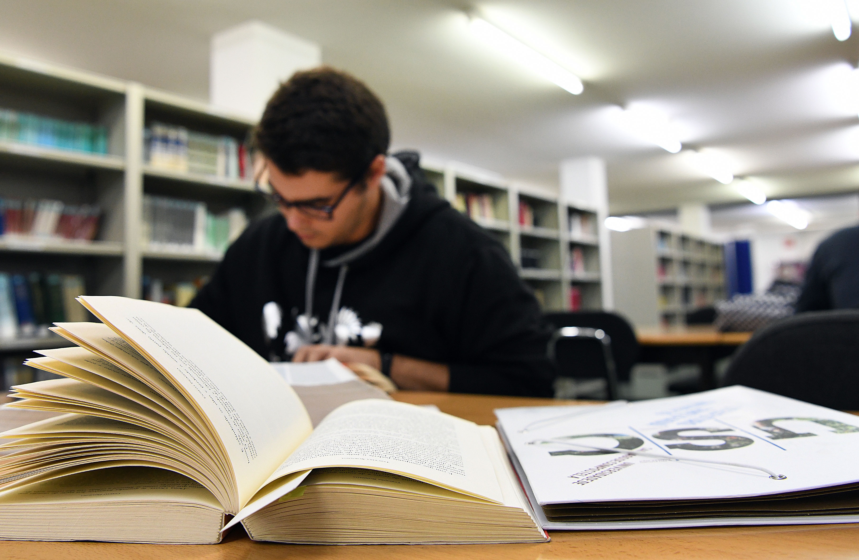 Alumno estudando nunha biblioteca da USC. FOTO: Santi Alvite