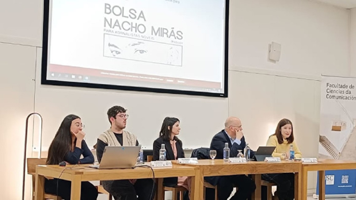 A bolsa ‘Nacho Mirás’ para xornalistas noveis chega á súa décima edición cunha dotación de 6.000 euros. A Facultade de Ciencias da Comunicación acolleu este xoves 27 a presentación da convocatoria impulsada dende o Colexio Profesional de Xornalistas de Galicia. A bolsa está destinada a promover proxectos xornalísticos de persoas tituladas en Xornalismo ou Comunicación Audiovisual, e conta coa colaboración da propia Facultade. A recepción de propostas está aberta ata o 31 de xullo de 2025.